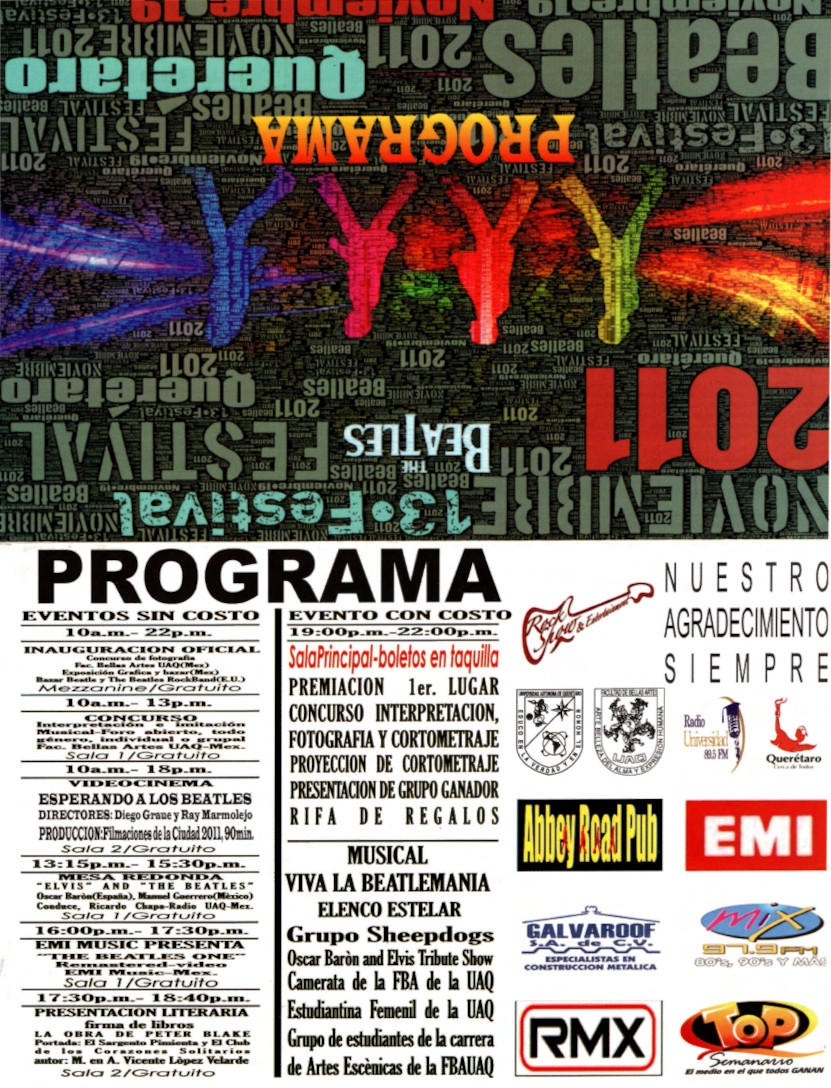 Programa del XIII Festival de los Beatles y programa para la función del Ballet Clásico de Querétaro para este festival.