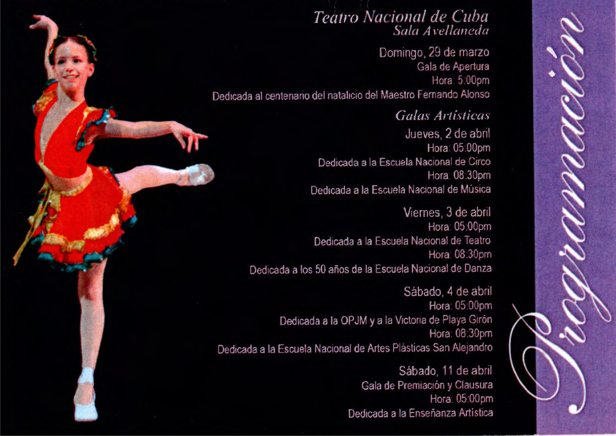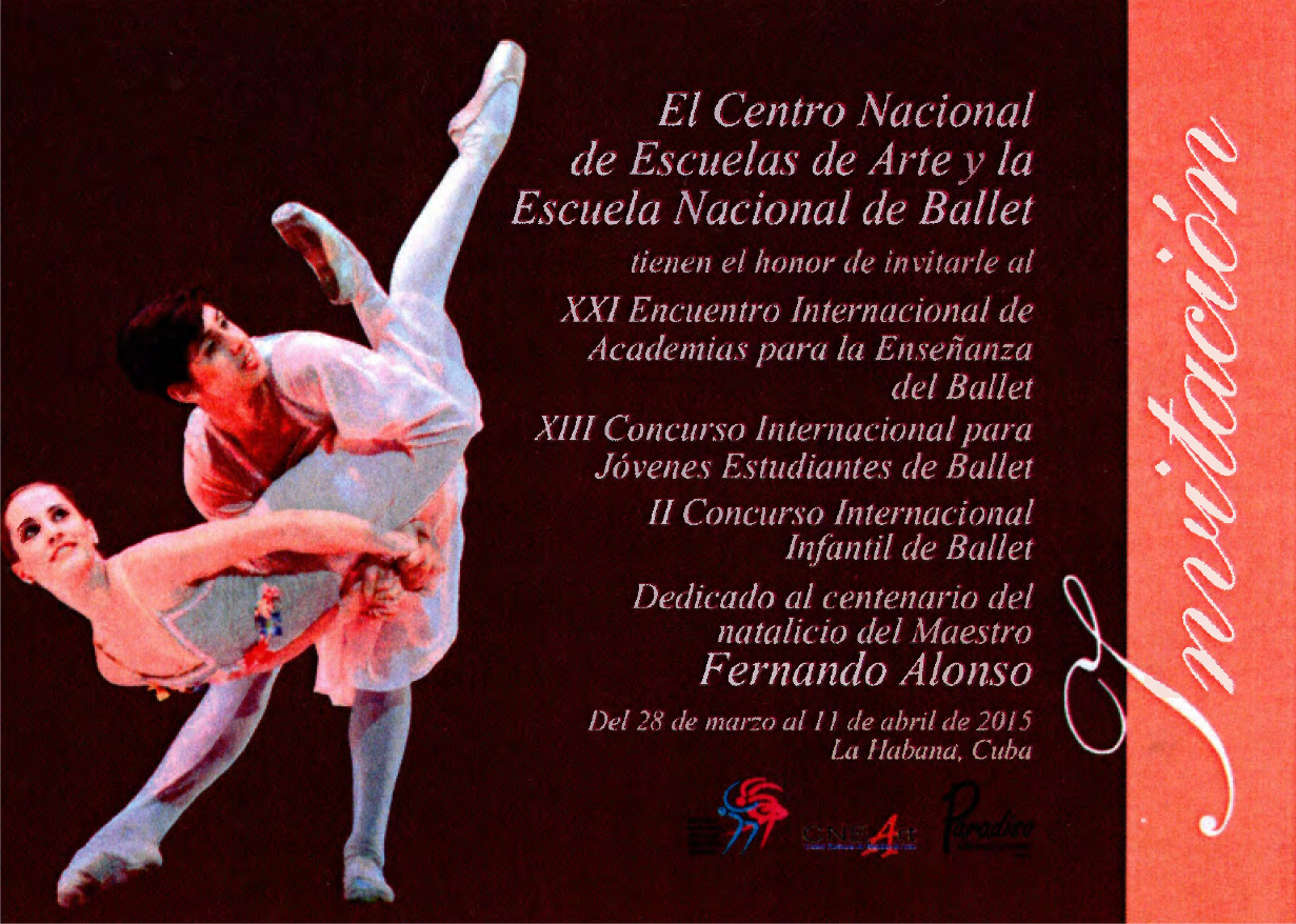 Invitación y programa general del Encuentro Internacional de Academias para la Enseñanza del Ballet. Dedicado al centenario del natalicio del Maestro Fernando Alonso. Del 28 de marzo al 11 de abril de 2015 en La Habana, Cuba