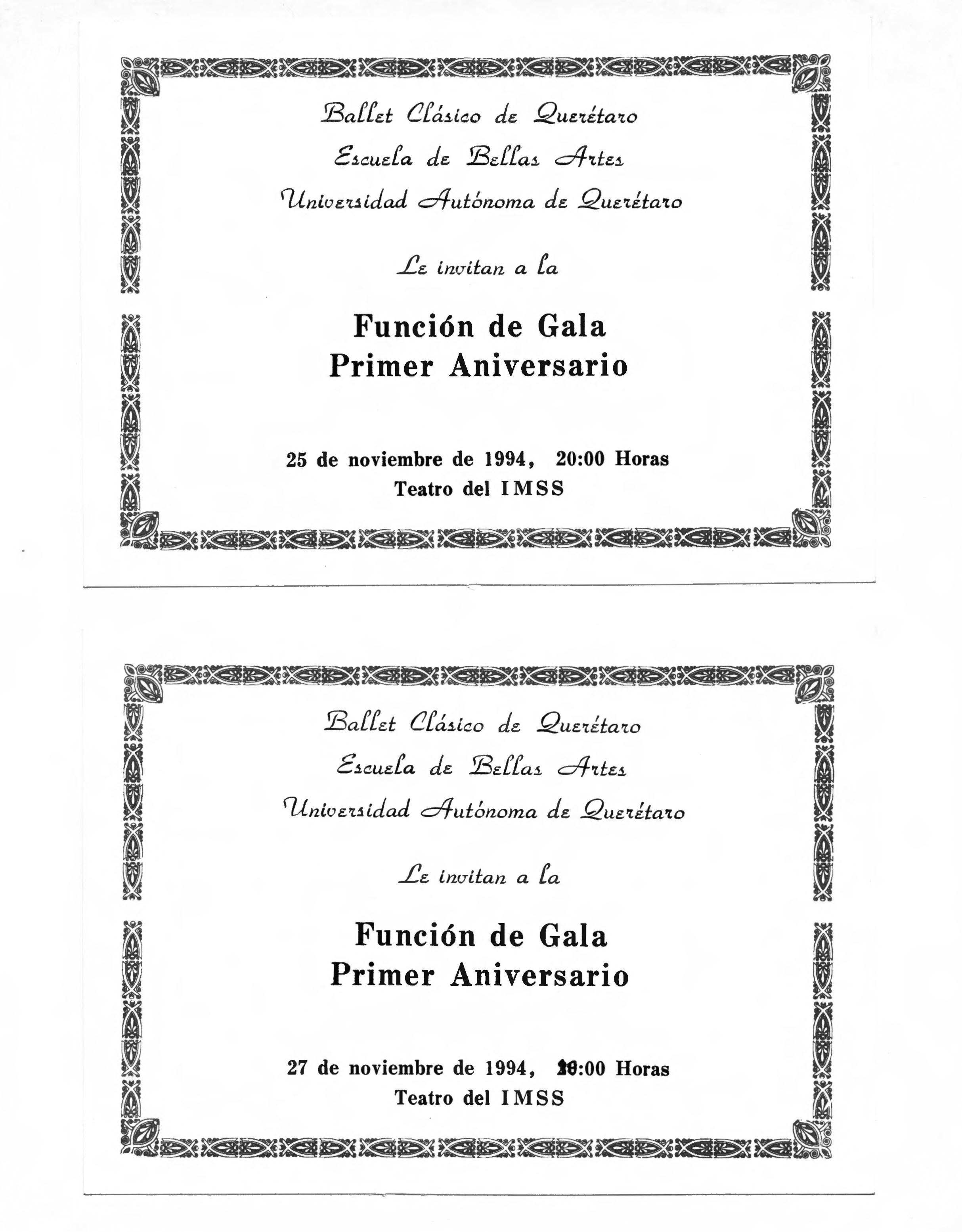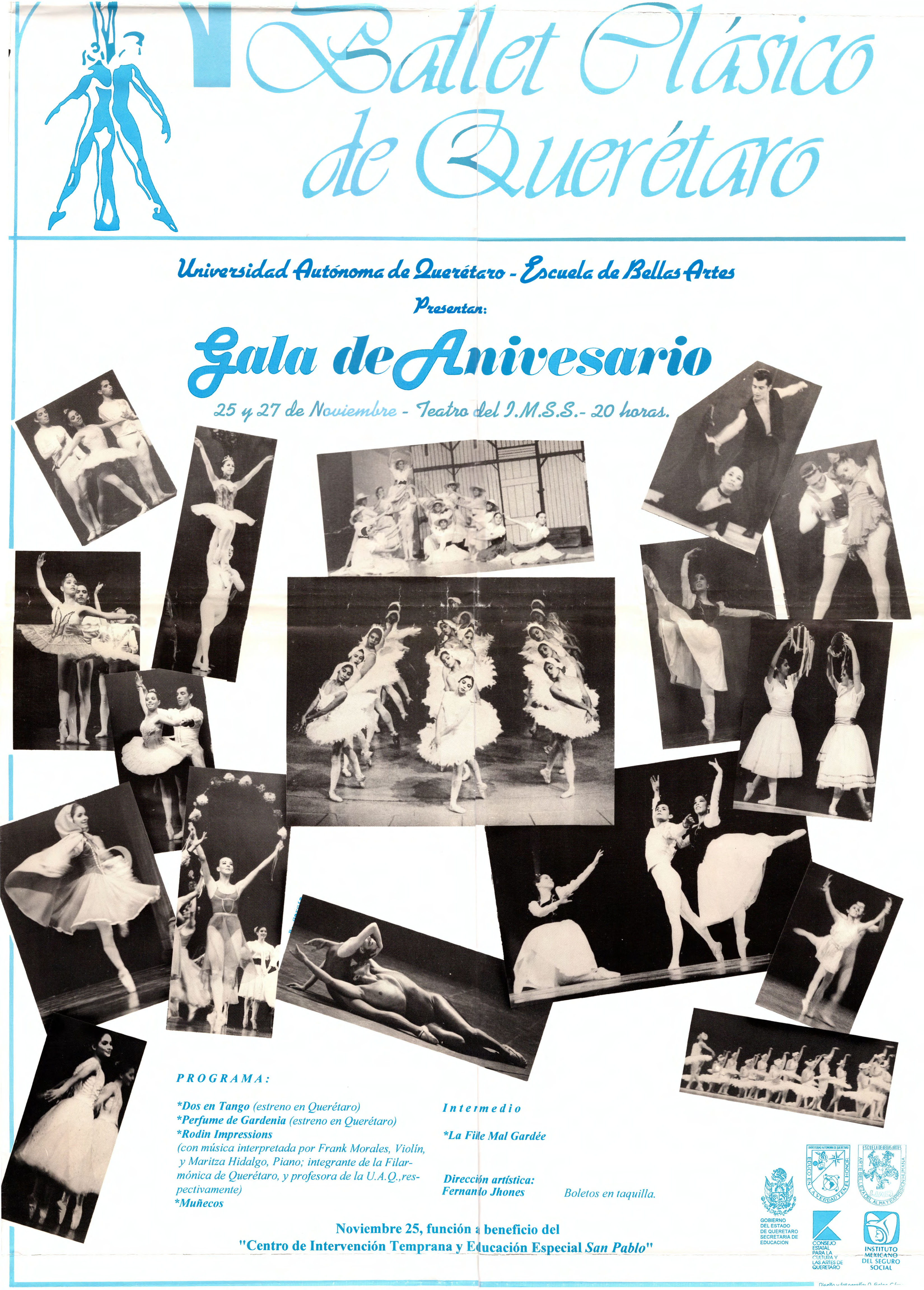 Material para la difusión de la Gala por el aniversario del Ballet Clásico de Querétaro en el año 1994.