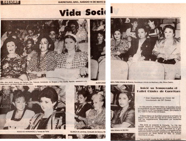 Gran espectáculo en honor del Voluntariado del DIF Estatal. Vida Social. Noticias. Queréatro, Qro., Sábado 14 de mayo de 1994