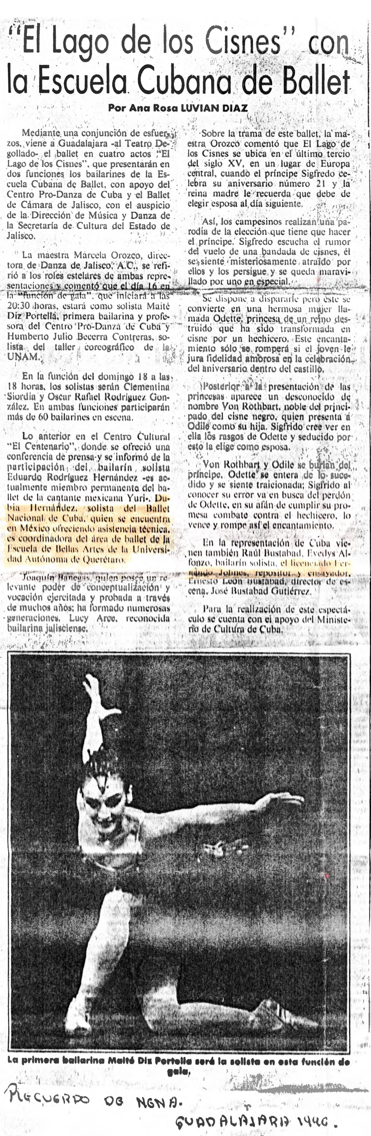 Dubia Hernández y Fernando Jhones, “Nota El Lago de los Cisnes con la Escuela Cubana de Ballet,” ReDCA-Ballet, consulta 9 de marzo de 2026, http://redca.uaq.mx/ballet/items/show/618.