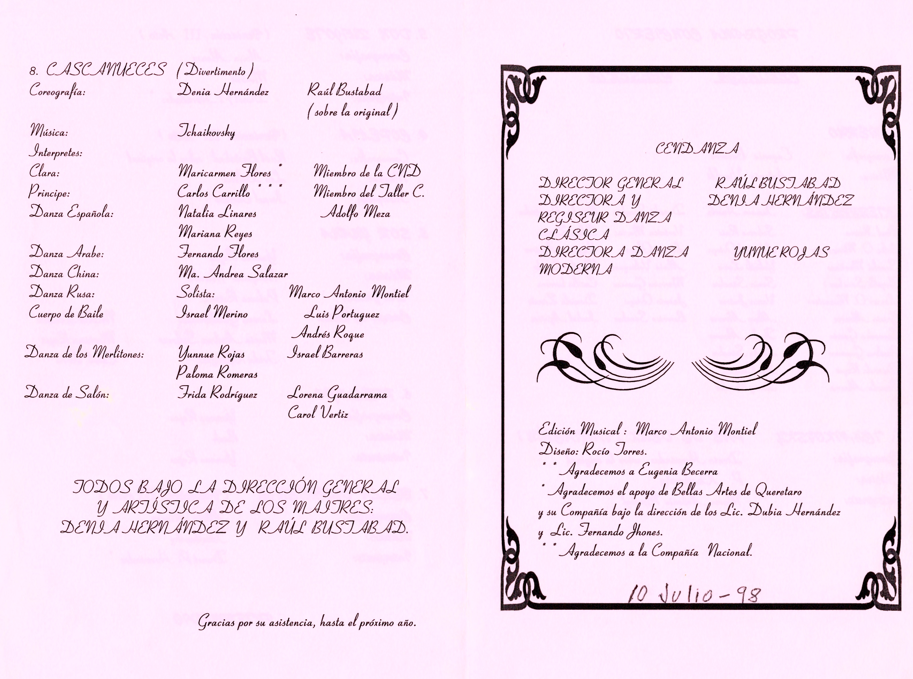 Dubia Hernández y Fernando Jhones, “Programa Cendanza,” ReDCA-Ballet, consulta 9 de marzo de 2026, http://redca.uaq.mx/ballet/items/show/644.