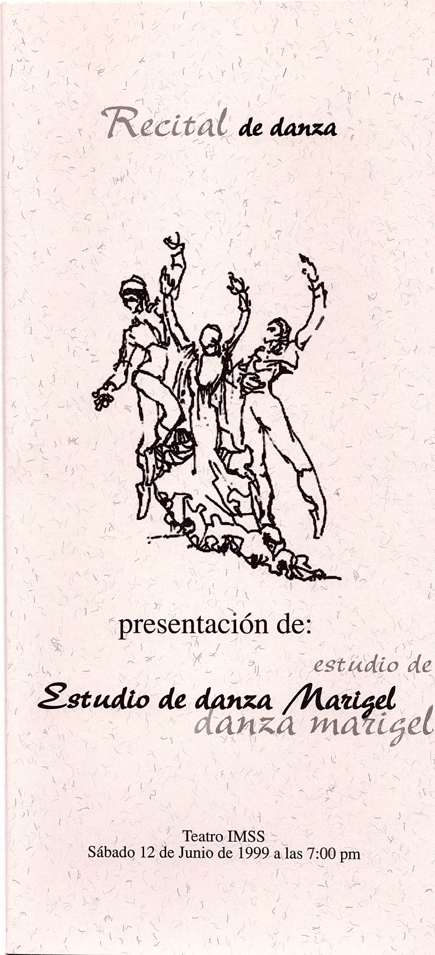 Programa recital de danza de la presentación del Estudio de Danza Marigel, en el Teatro del IMSS, el sábado 12 de junio a las 7 pm. dividido en: primera parte "tu mundo de azúcar", segunda parte "viva el duende", tercera parte "fiesta flamenca"