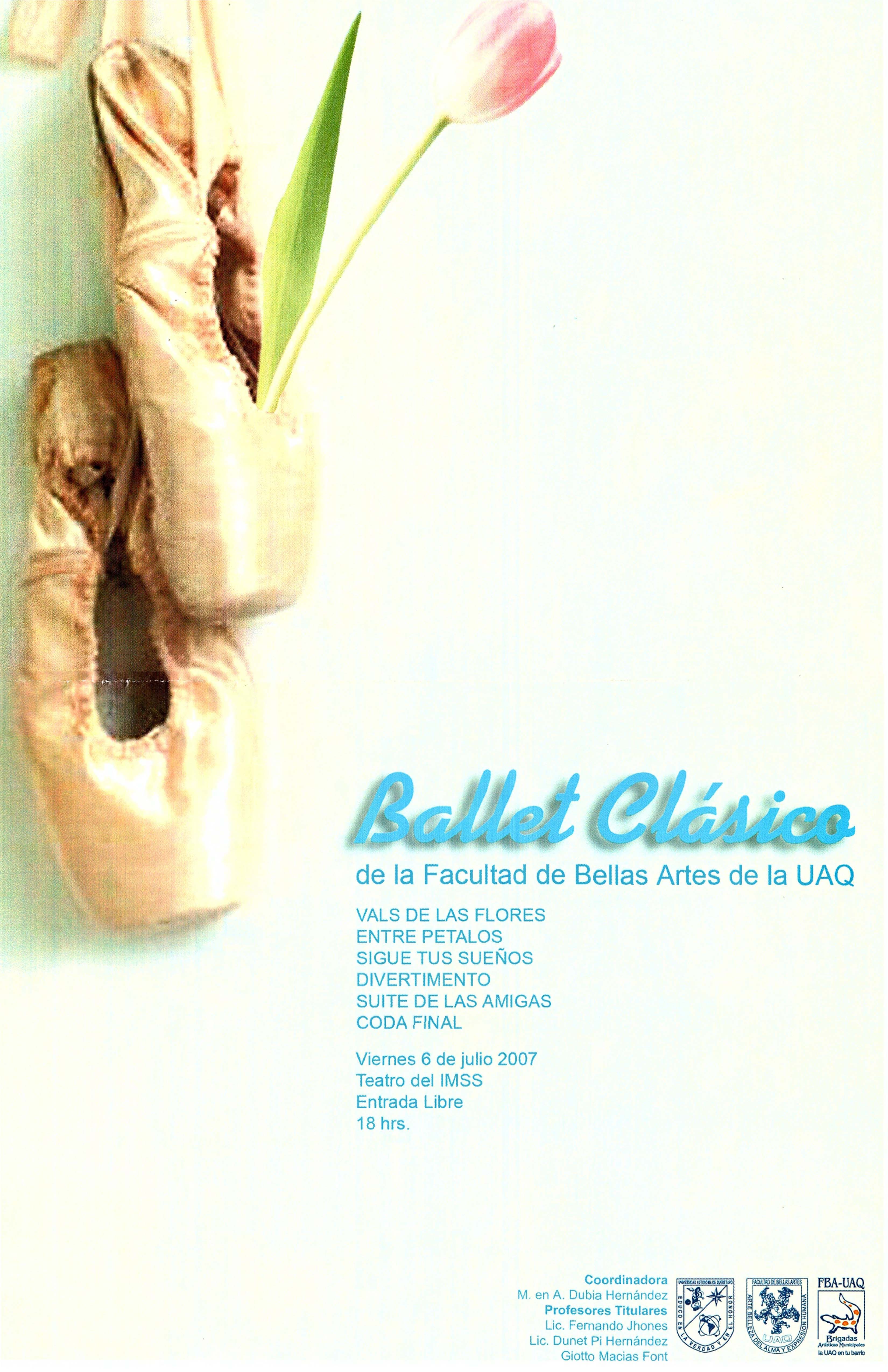 Cartel y programa de la presentación de el 6 de Julio del 2007 del Área de Ballet Clásico de la Facultad de Bellas Artes.