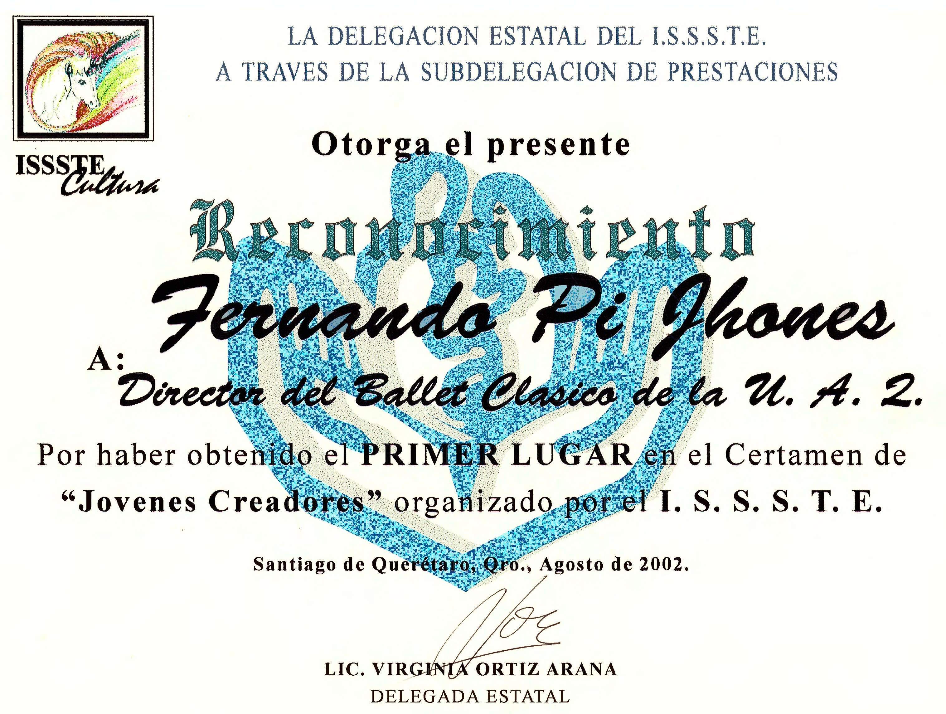 Fernando Jhones, “Reconocimiento por Primer lugar en Certamen "Jóvenes Creadores",” ReDCA-Ballet, consulta 9 de marzo de 2026, http://redca.uaq.mx/ballet/items/show/690.