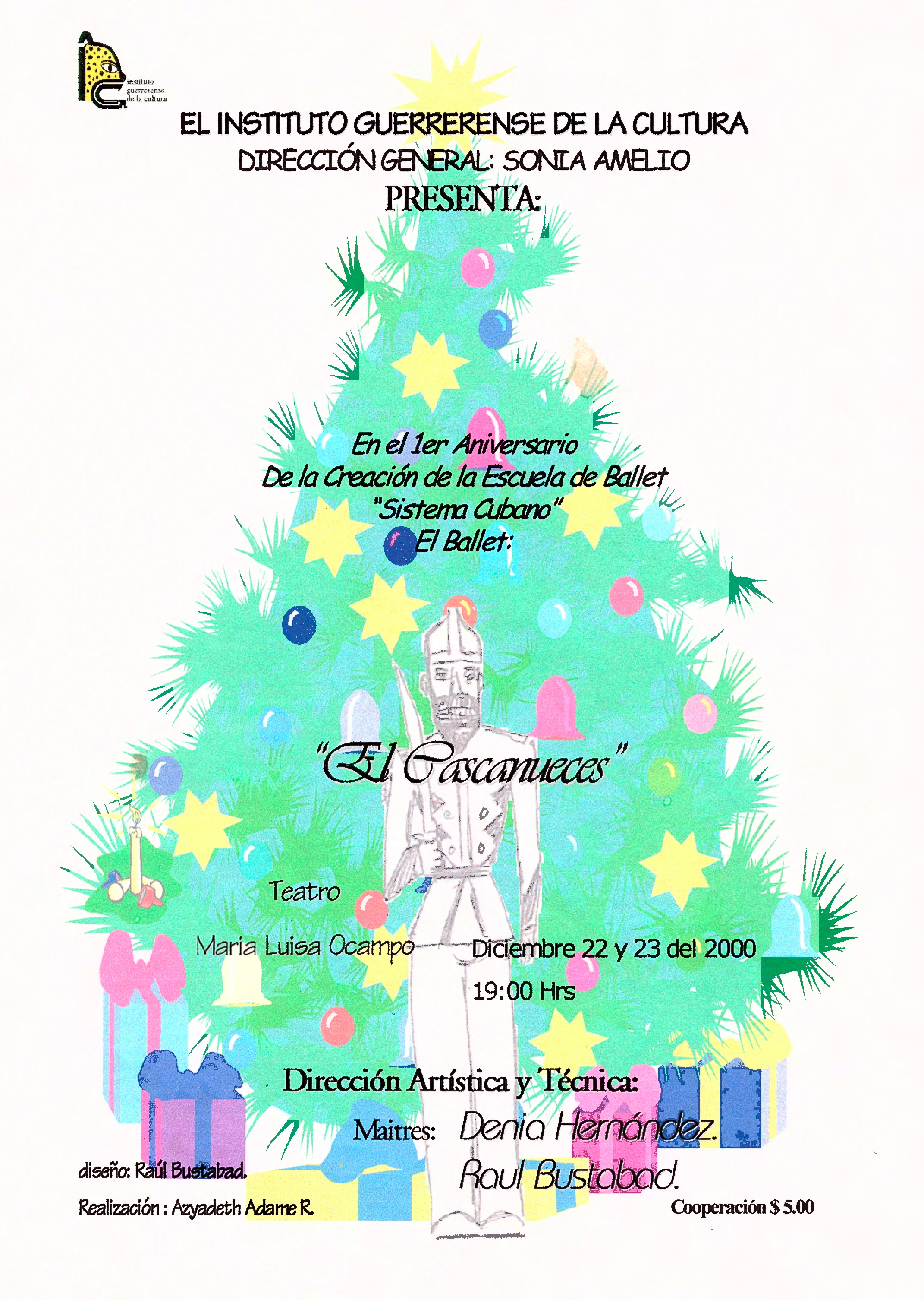 Invitación por parte del Instituto Guerrerense de la Cultura Dirección gral. Sonia Amelio, en el 1er aniversario de la Creación de la Escuela de Ballet "Sistema Cubano" con "El Cascanueces" en el Teatro María Luisa Ocampo el 22 y 23 de dicimebre de 2000 a las 19hrs