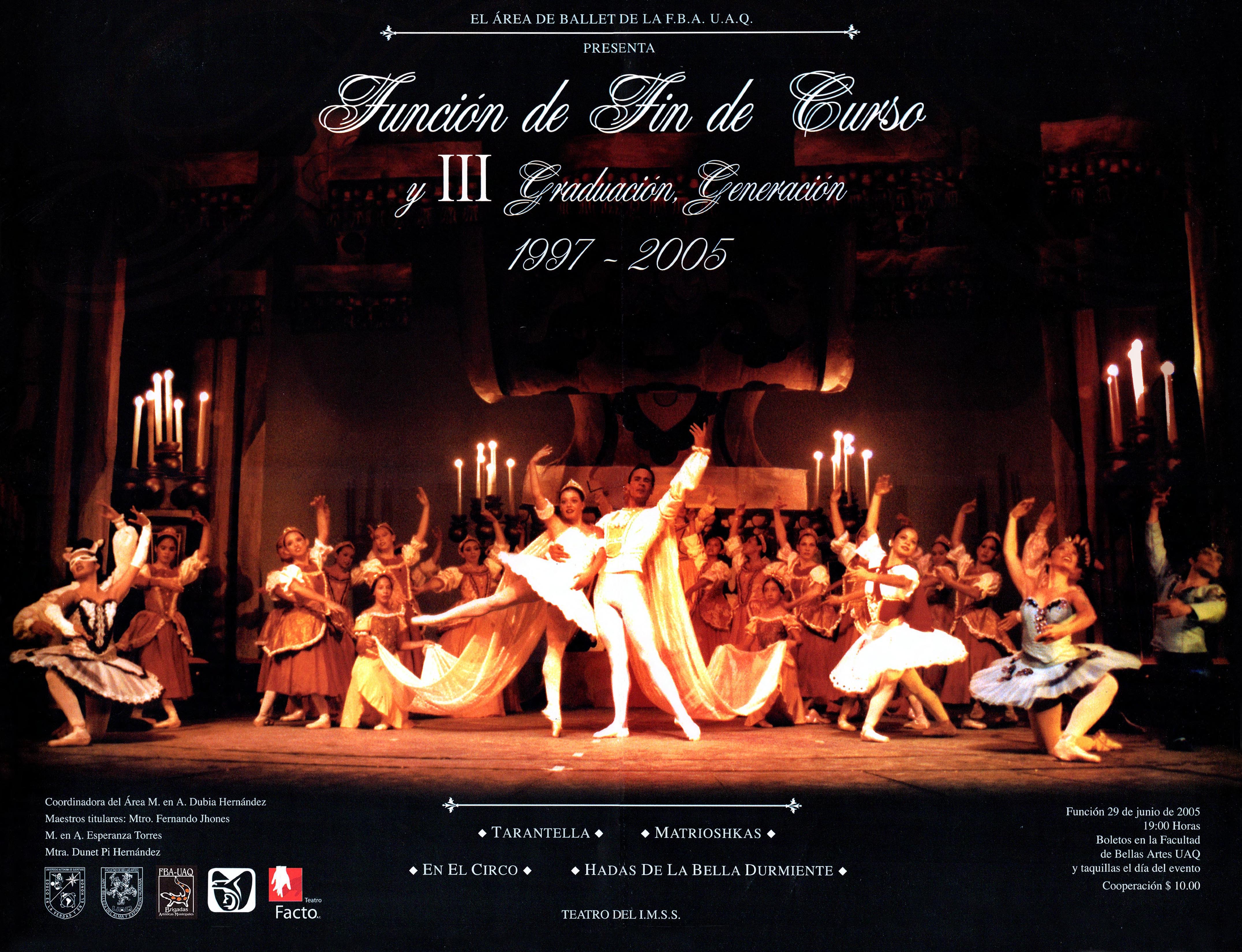 Material gráfico informativo para la función de fin de curso y III graduación de la generación 1997-2005 de el Área de Ballet de la Facultad de Bellas Artes, UAQ.