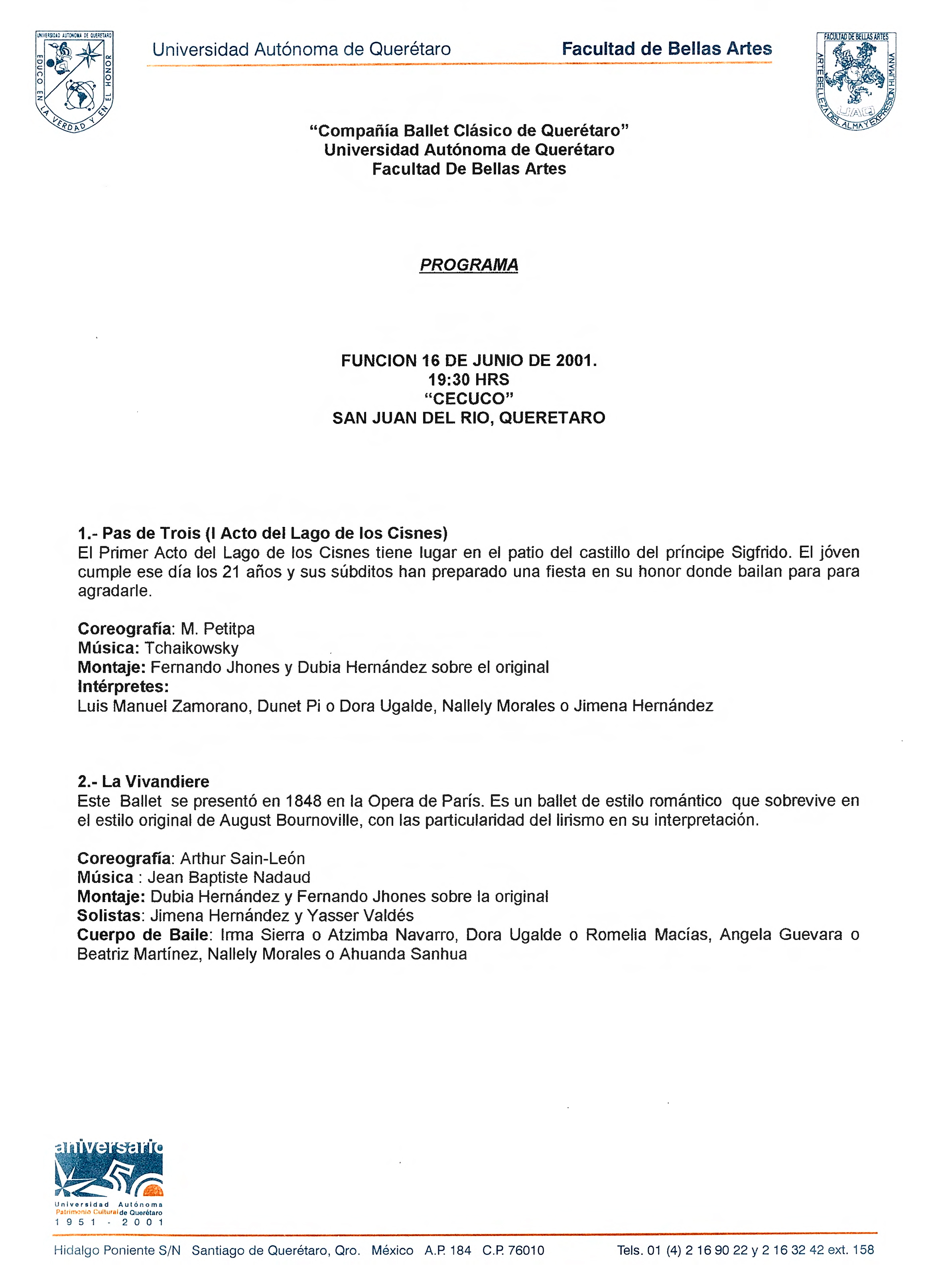 Ballet Clásico de Querétaro, “Programa función CECUCO,” ReDCA-Ballet, consulta 9 de marzo de 2026, http://redca.uaq.mx/ballet/items/show/703.