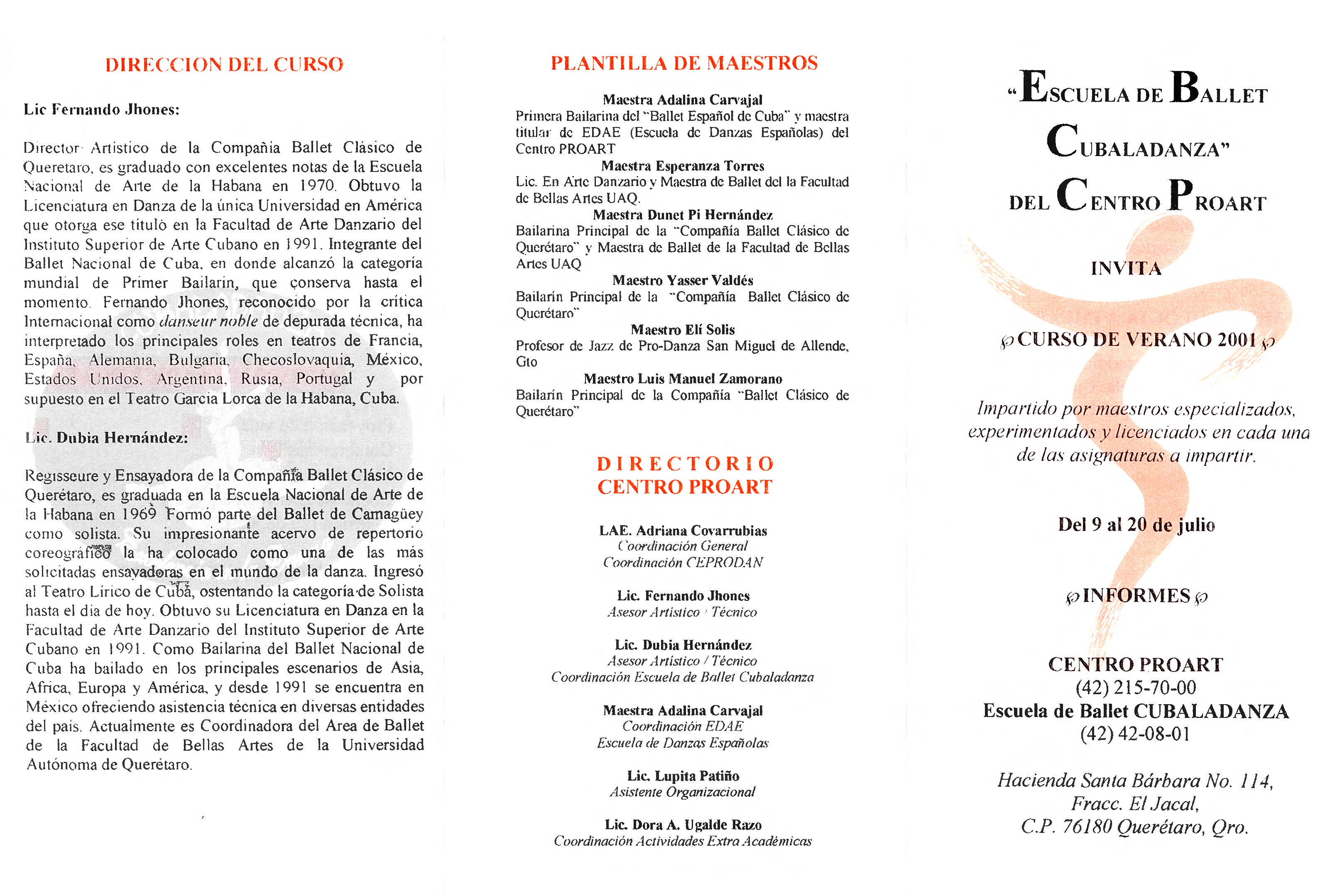 Dubia Hernández y Fernando Jhones, “Programa Curso de Verano 2001,” ReDCA-Ballet, consulta 9 de marzo de 2026, http://redca.uaq.mx/ballet/items/show/706.