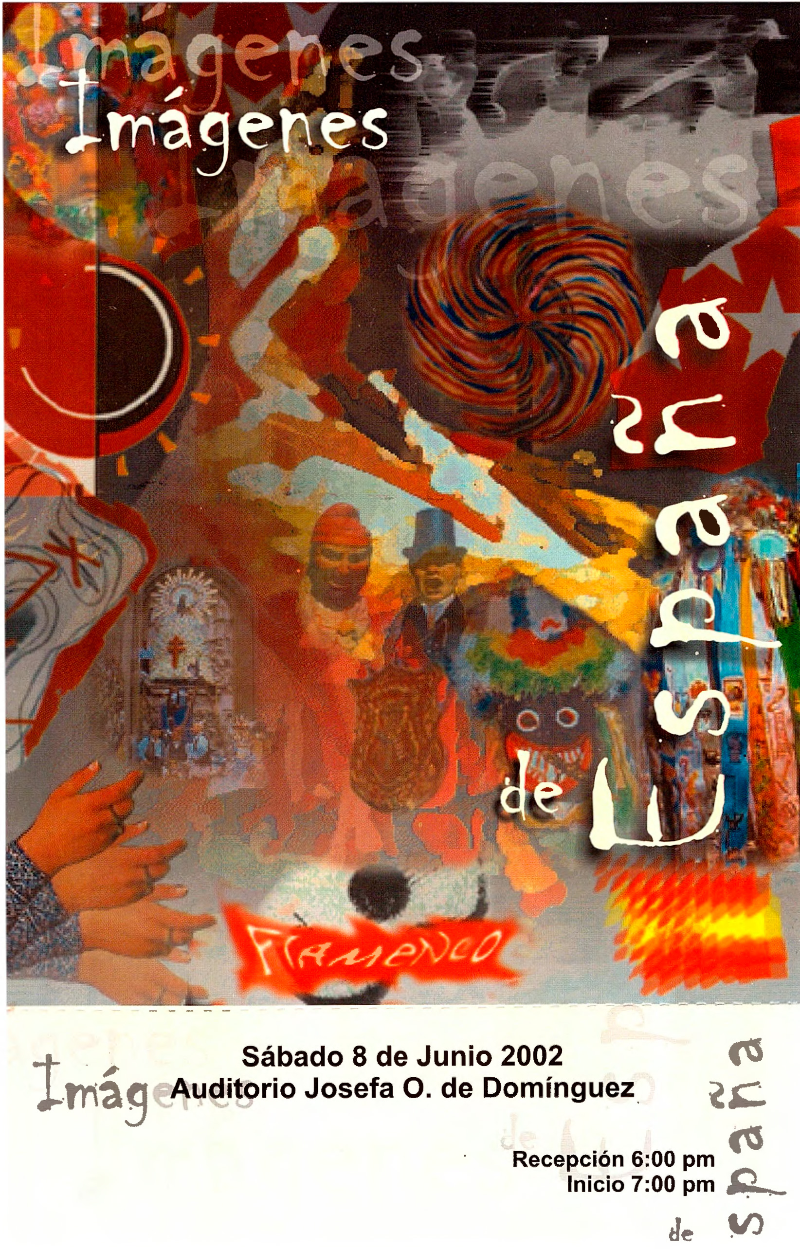Cartel de evento Imágenes de España, flamenco, el sábado 8 de junio 2002 a las 7 pm. en el Auditorio Josefa