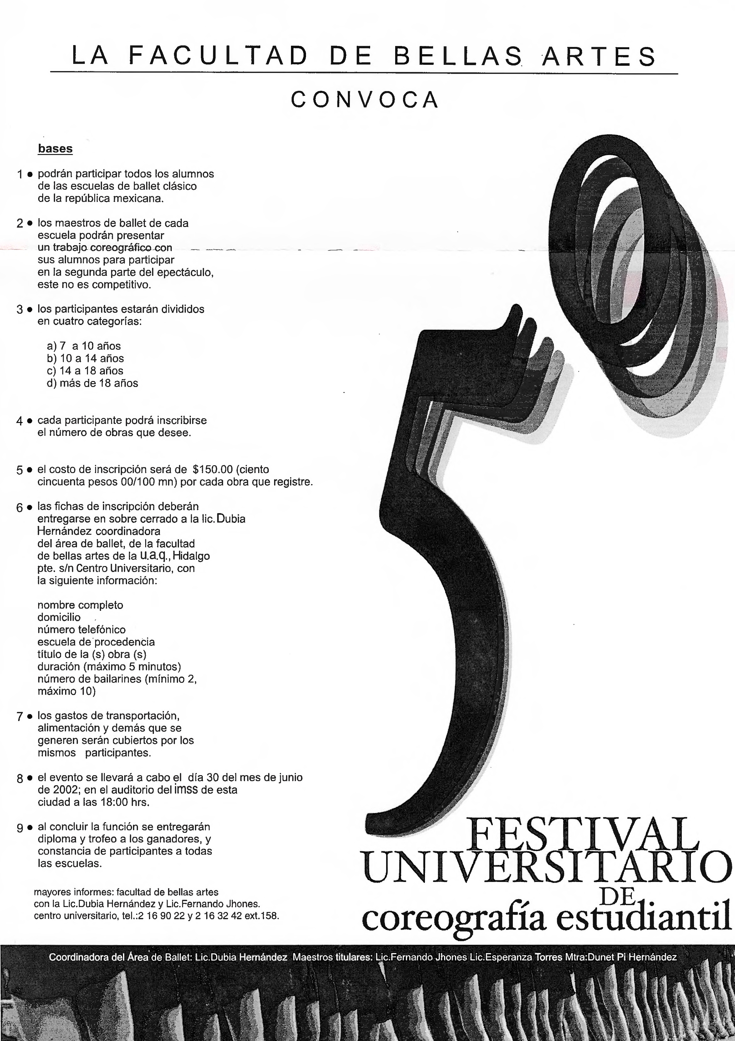 Ballet Clásico de Querétaro, “Cartel 5to Festival Universitario de coreografía estudiantil,” ReDCA-Ballet, consulta 9 de marzo de 2026, http://redca.uaq.mx/ballet/items/show/712.