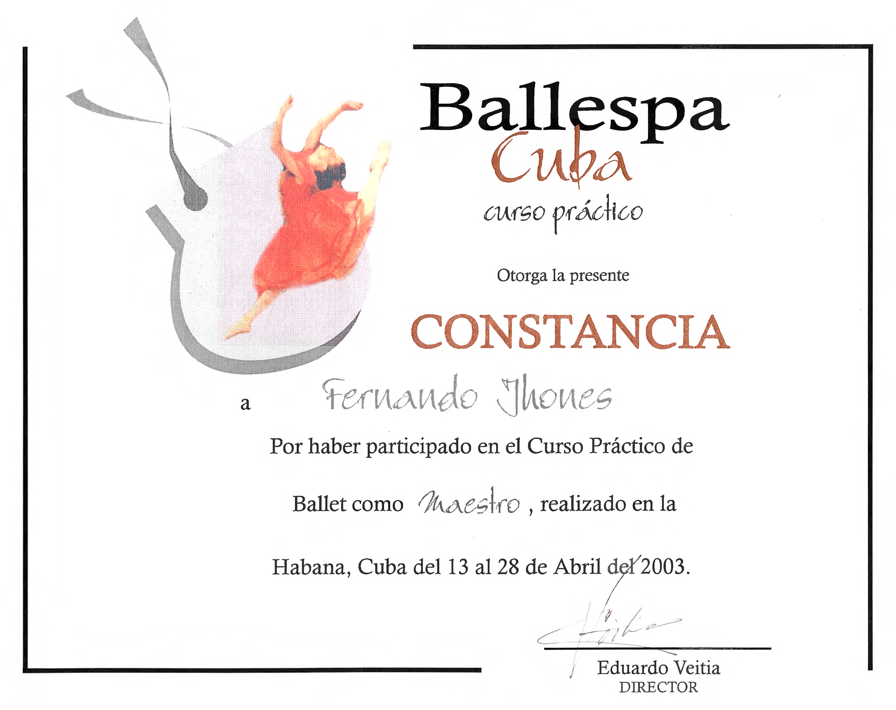 Fernando Jhones, “Constancia participación Ballespa Cuba 2003,” ReDCA-Ballet, consulta 9 de marzo de 2026, http://redca.uaq.mx/ballet/items/show/731.