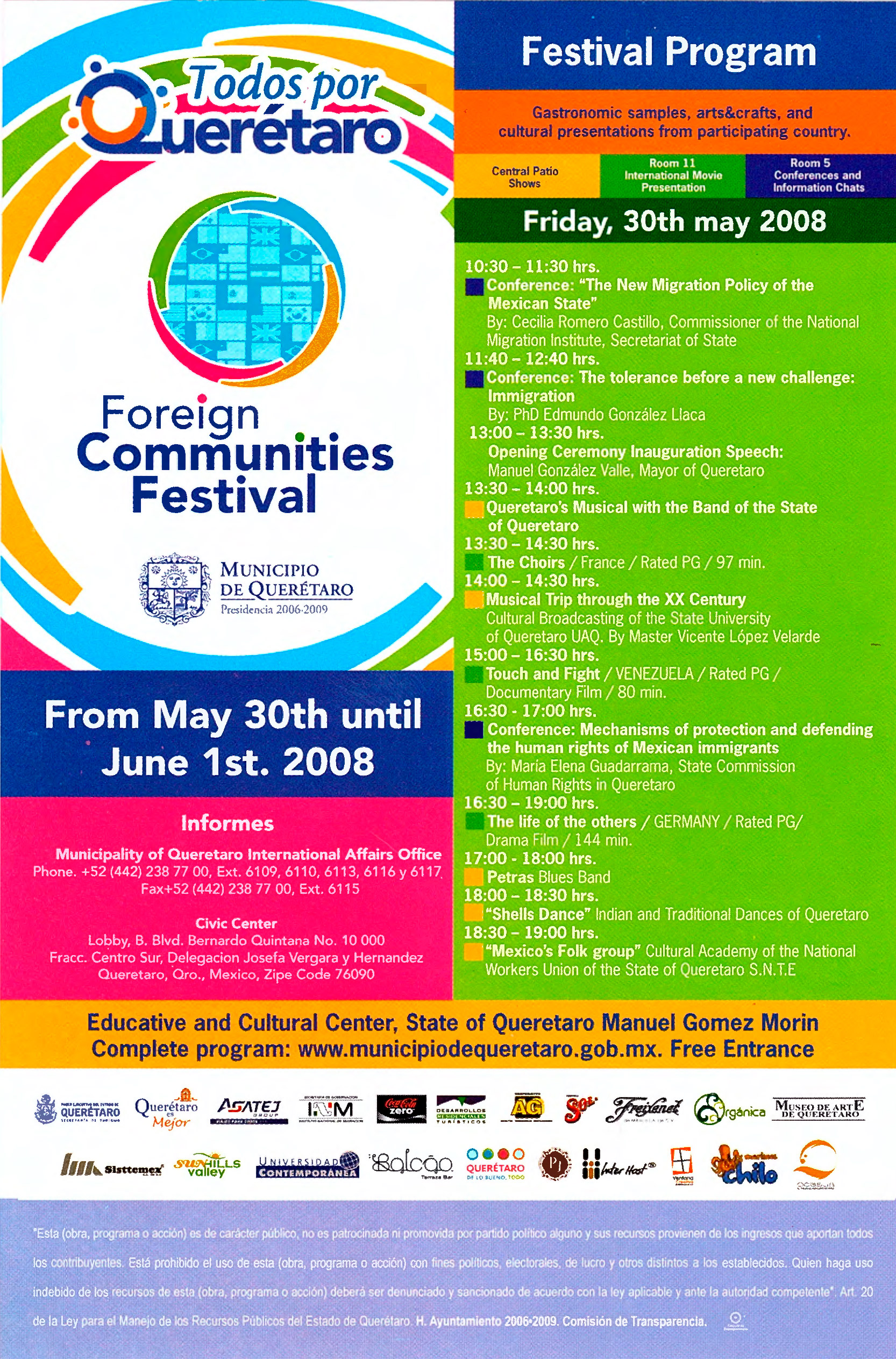 Ballet Clásico de Querétaro, “Programa Festival de Comunidades Extranjeras 2008,” ReDCA-Ballet, consulta 9 de marzo de 2026, http://redca.uaq.mx/ballet/items/show/775.