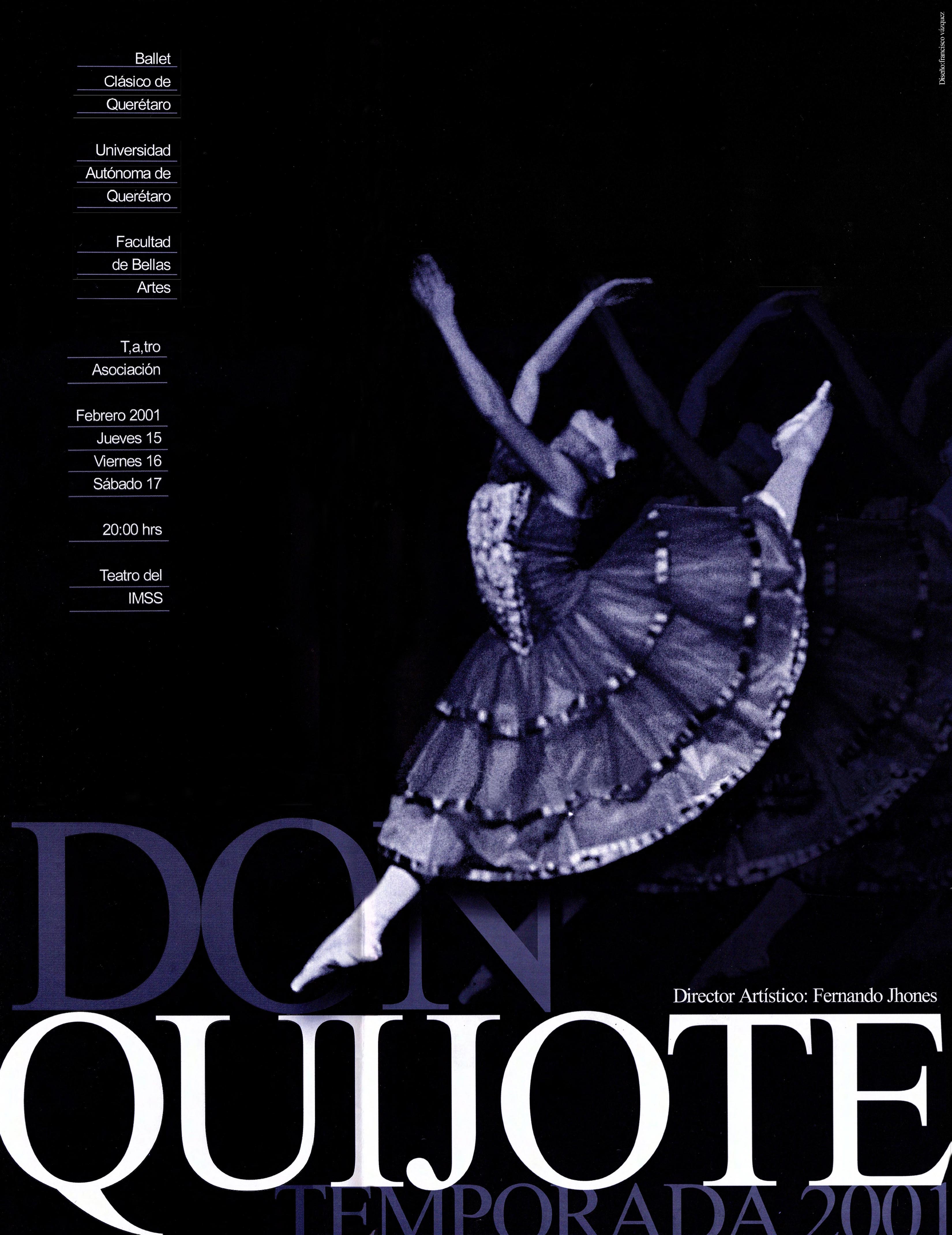Ballet Clásico de Querétaro Fernando Jhones, “Don Quijote / Temporada 2001,” ReDCA-Ballet, consulta 9 de marzo de 2026, http://redca.uaq.mx/ballet/items/show/78.