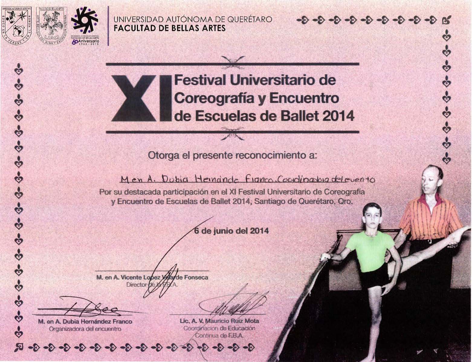 Dubia Hernández/Dunet Pi Hernández, “XI Festival Universitario de Coreografía y Encuentro de Escuelas de Ballet,” ReDCA-Ballet, consulta 9 de marzo de 2026, http://redca.uaq.mx/ballet/items/show/84.