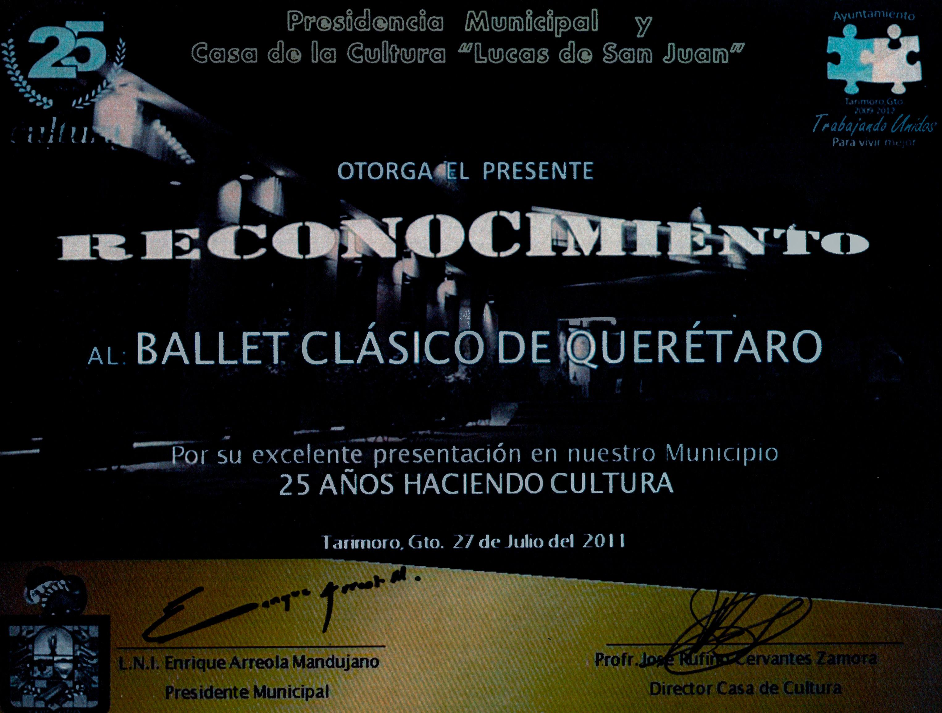 Ballet Clásico de Querétaro, “Reconocimiento 25 años Haciendo Cultura,” ReDCA-Ballet, consulta 9 de marzo de 2026, http://redca.uaq.mx/ballet/items/show/840.