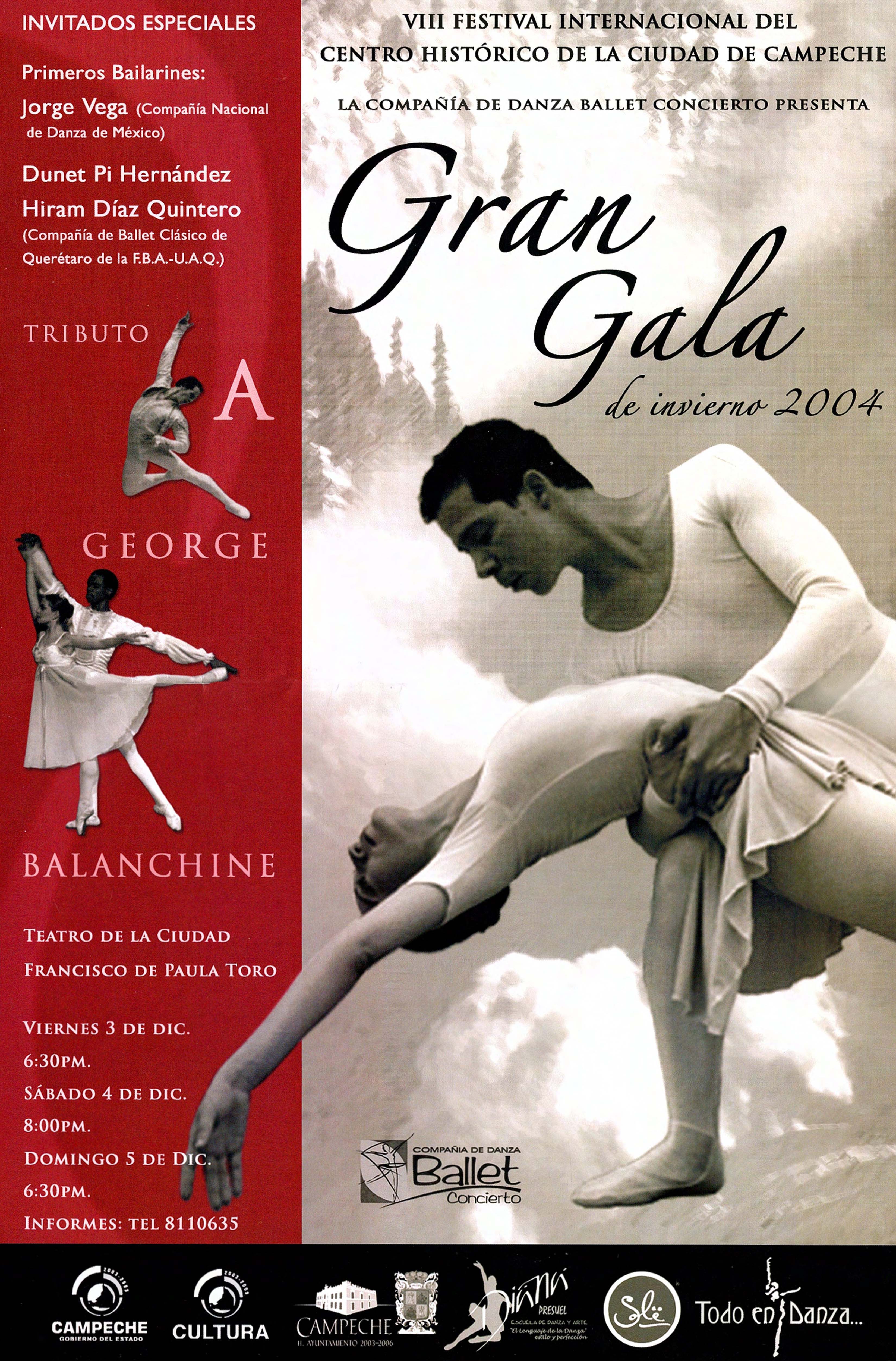 Material informativo para la Gran Gala de invierno 2004, presentado por la Compañia de Danza Ballet Concierto de Campeche, para el VIII Festival Internacional.