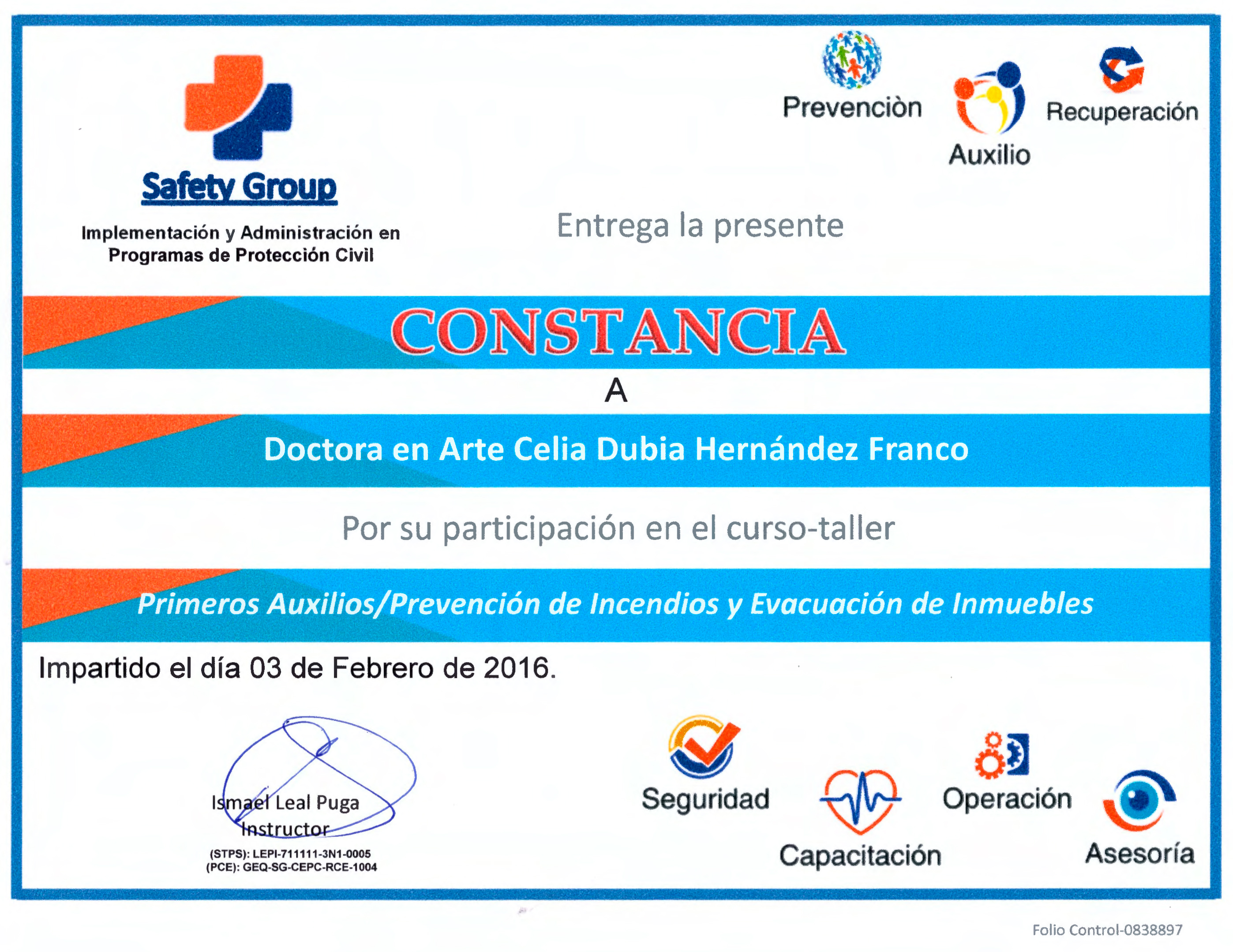 Dubia Hernández, “Constancia Curso-taller Primeros auxilios/prevención de incendios y evacuación,” ReDCA-Ballet, consulta 9 de marzo de 2026, http://redca.uaq.mx/ballet/items/show/865.