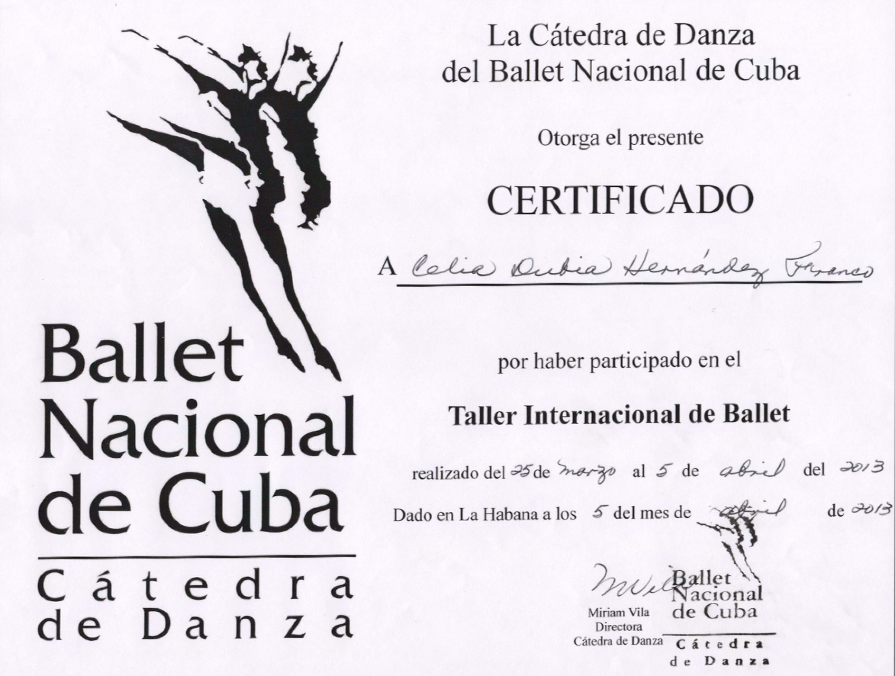 Certificado Taller Internacional de Ballet 2013