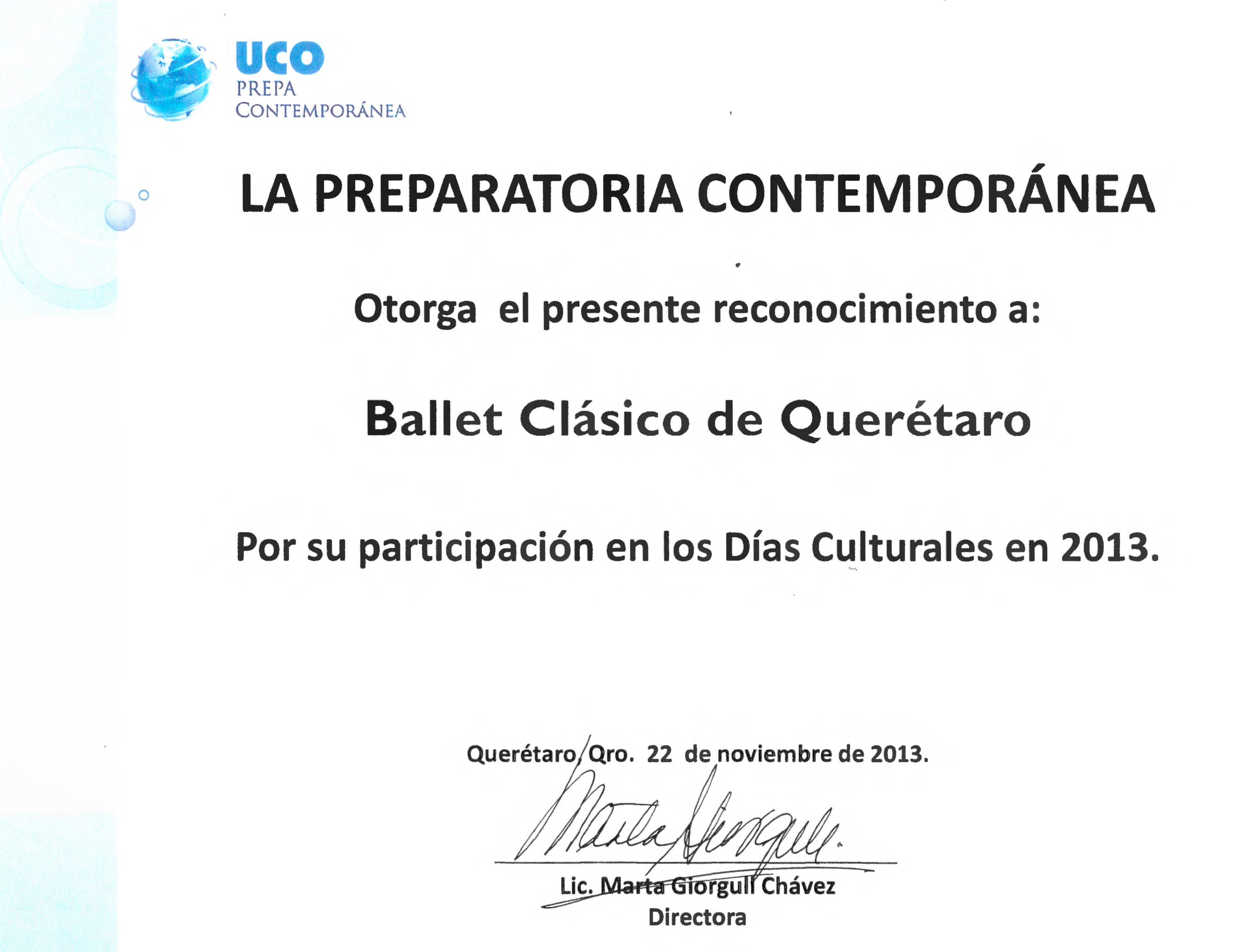 Ballet Clásico de Querétaro, “Reconocimiento Días Culturales 2013,” ReDCA-Ballet, consulta 9 de marzo de 2026, http://redca.uaq.mx/ballet/items/show/885.