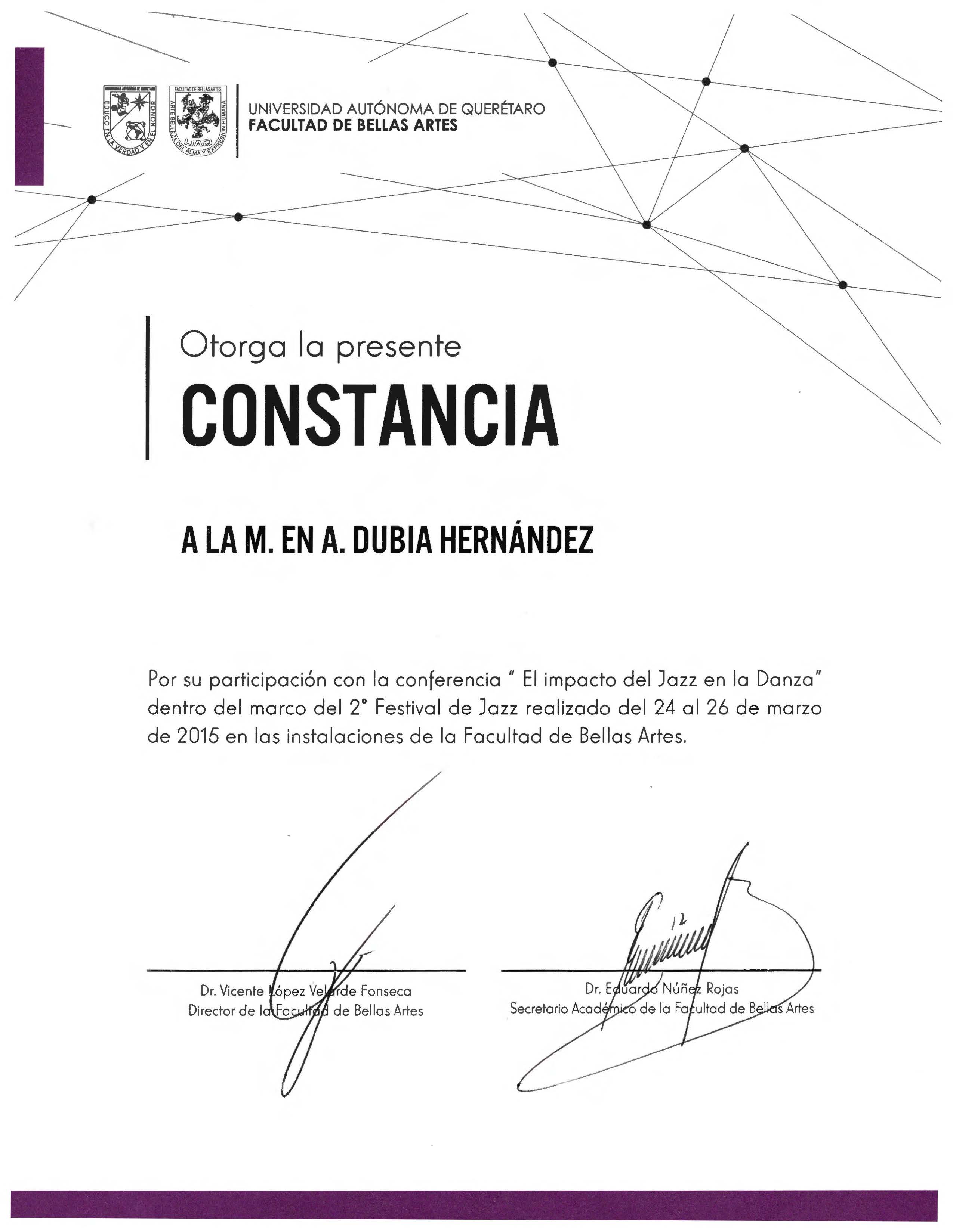 Celia Dubia Hernández Franco, “Constancia el impacto del jazz en la danza,” ReDCA-Ballet, consulta 9 de marzo de 2026, http://redca.uaq.mx/ballet/items/show/913.