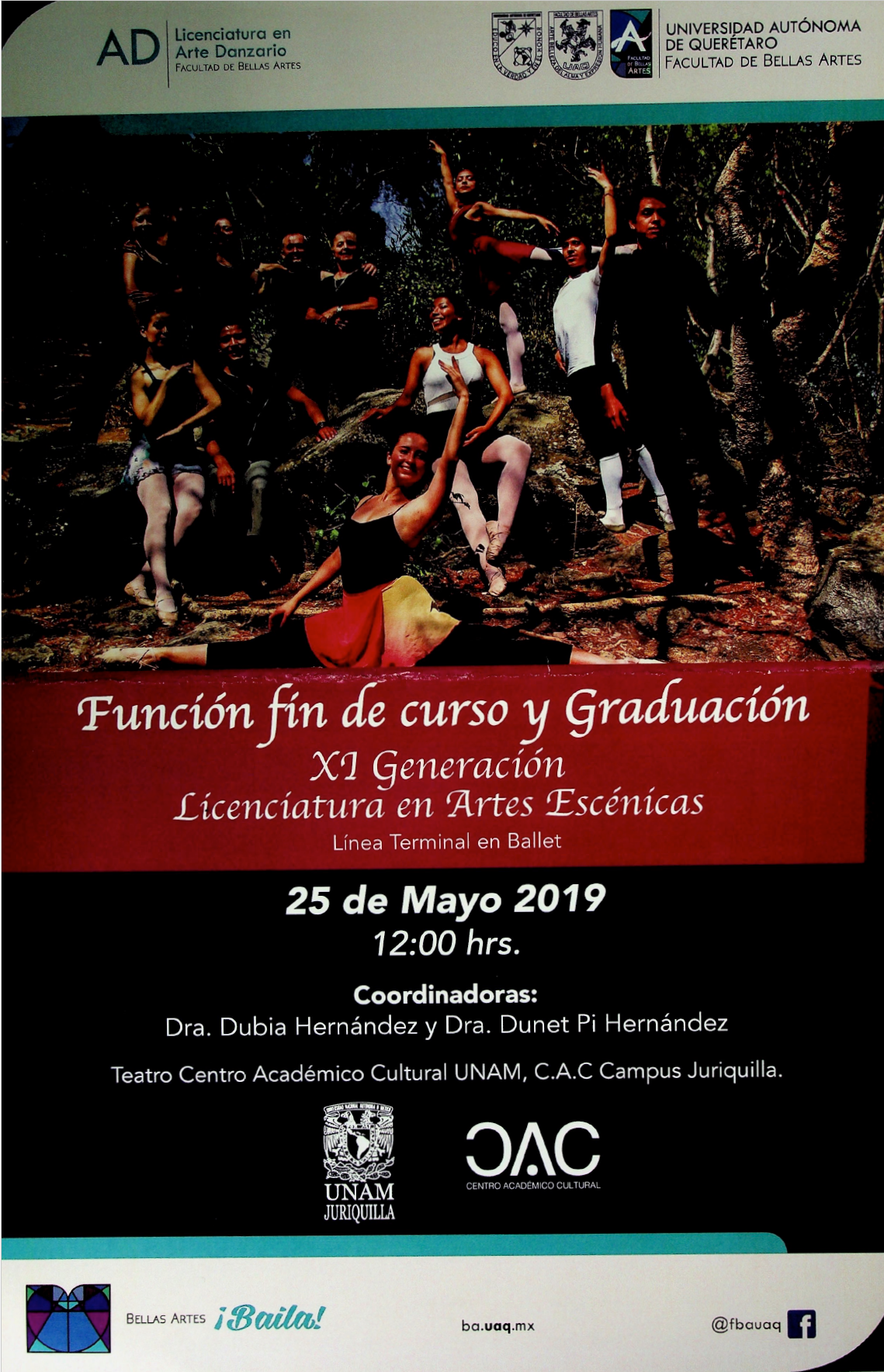 Cartel de la funcion de fin de curso y graduacion de la XI Generacion de la Licenciatura en Artes Escenicas con linea terminal en Ballet