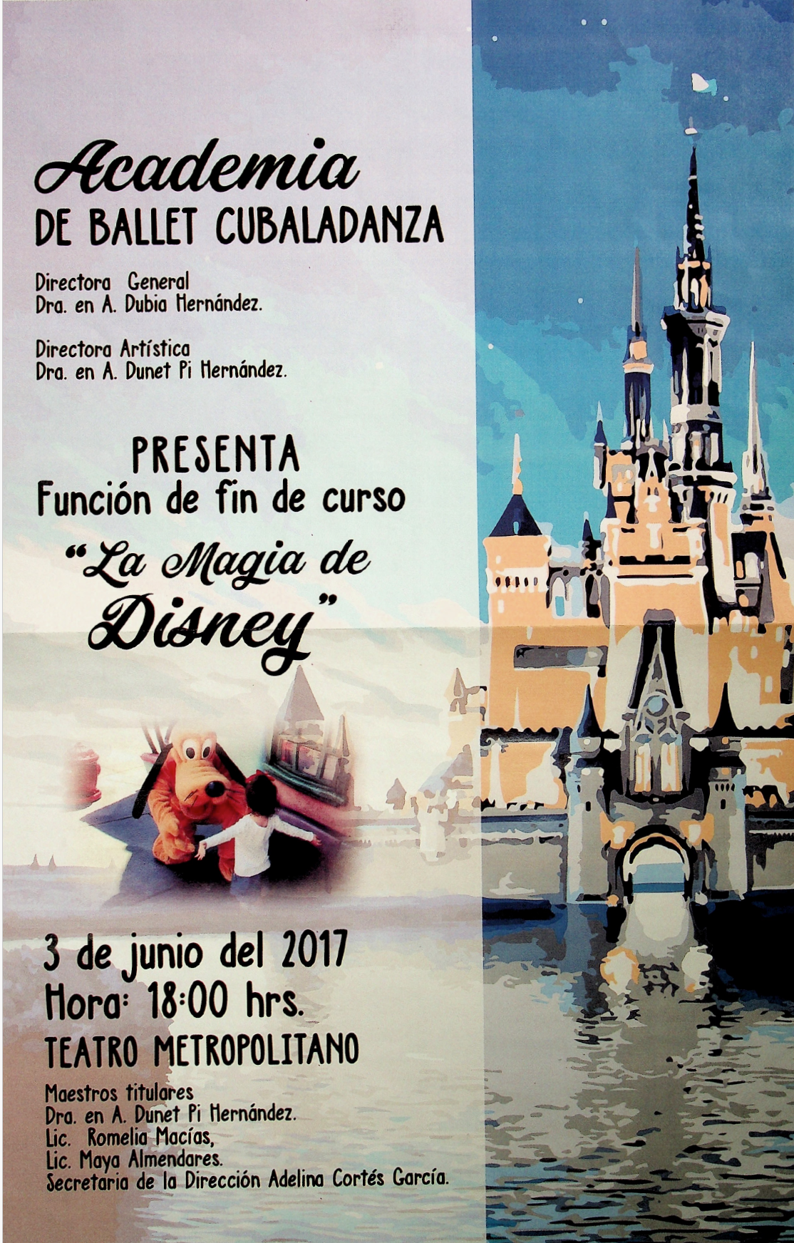 Cartel de la presentacion de la funcion de fin de curso La Magia de Disney por parte de la Academia de Ballet Cubaladanza