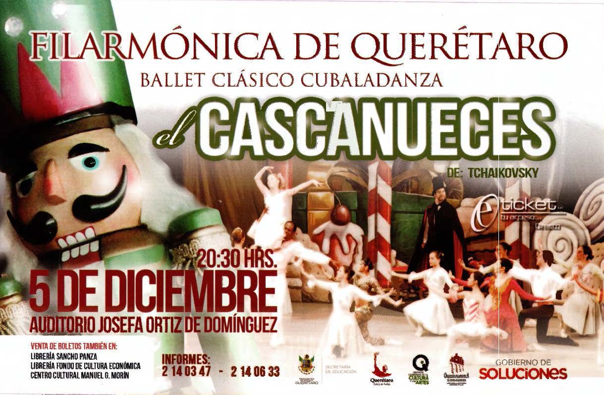 Cartel para la presentación de "El Cascanueces", interpretado por la Filarmónica de Querétaro y el Ballet Clásico Cubaladanza.
