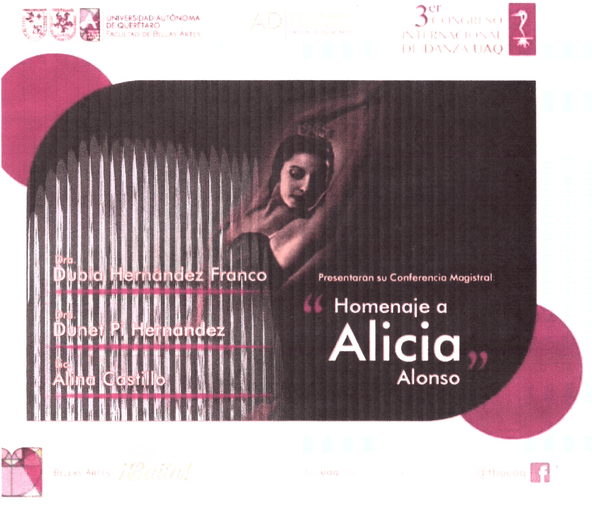 Cartel sobre la conferencia magistral Homenaje a Alicia Alonso en el Tercer Congreso Internacional de Danza UAQ