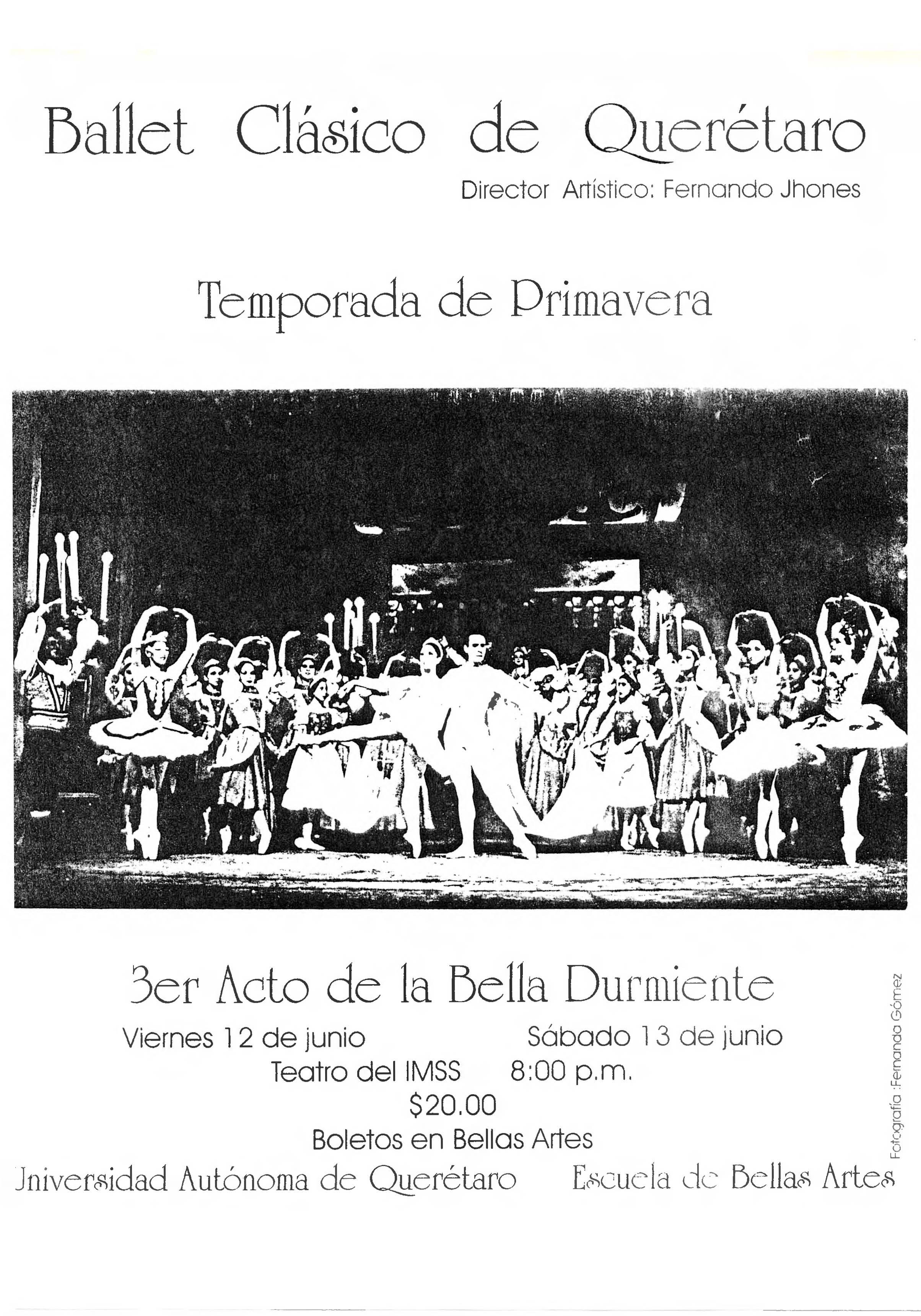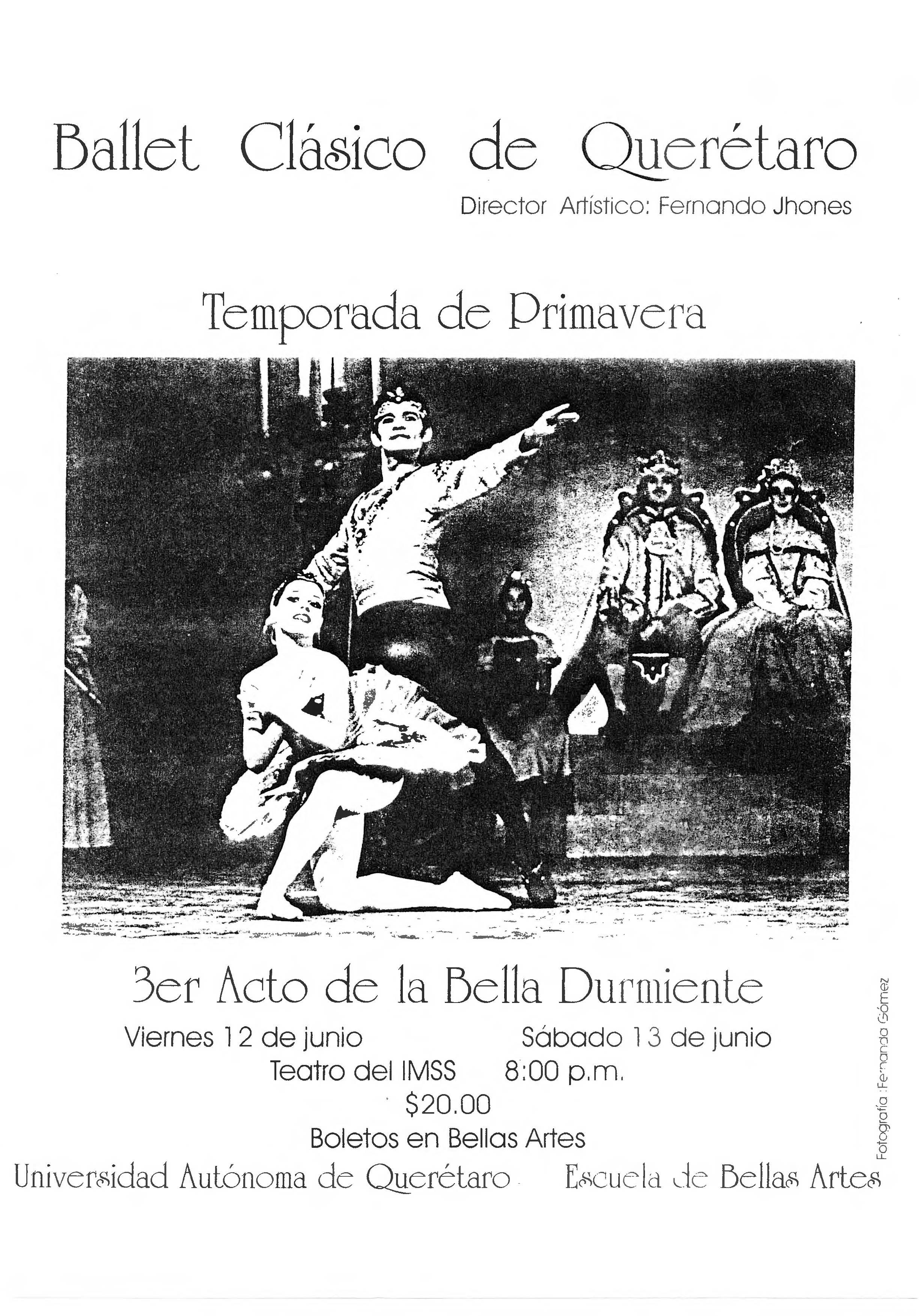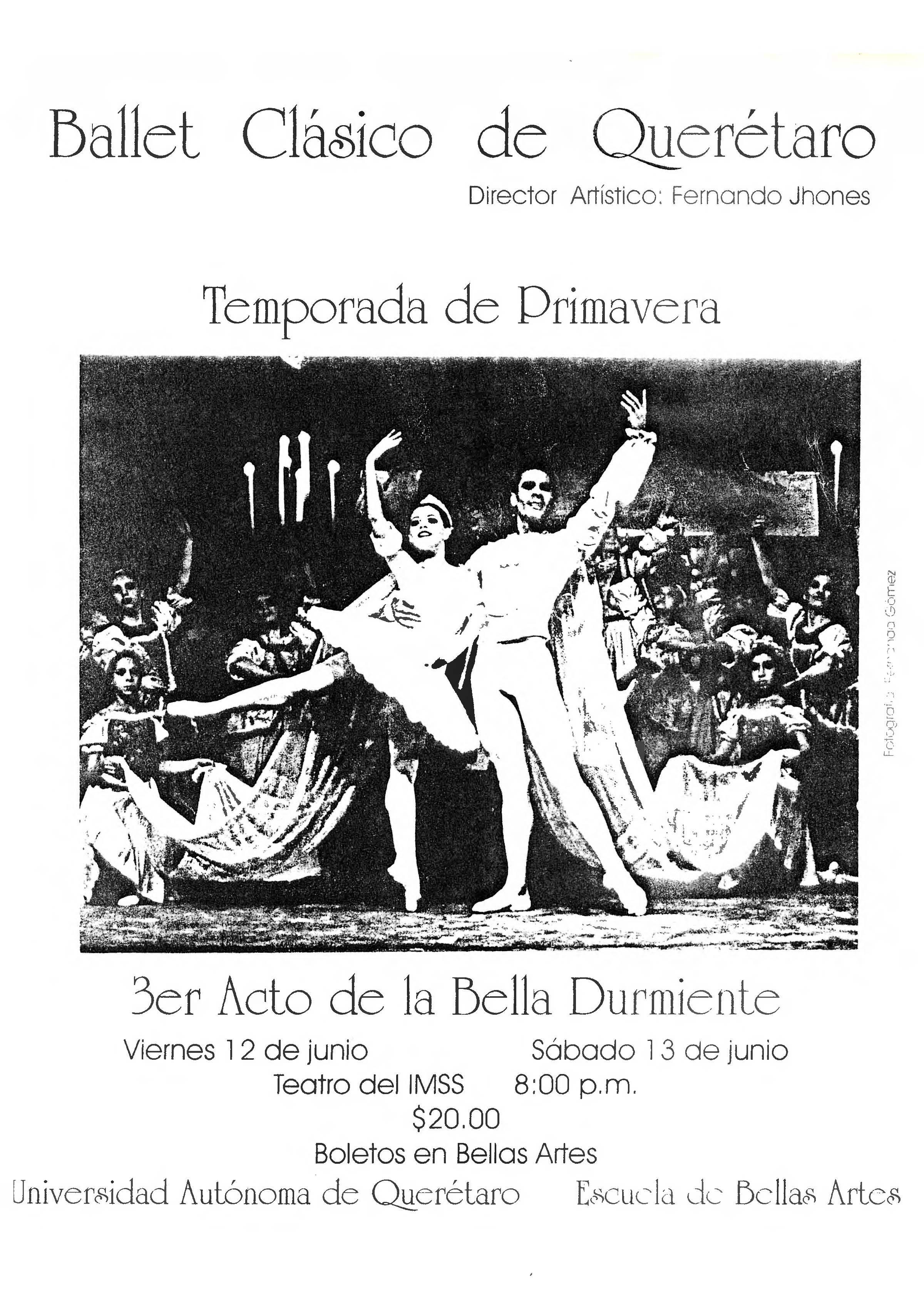 Ballet Clásico de Querétaro Fernando Jhones, “Temporada de primavera 1998,” ReDCA-Ballet, consulta 9 de marzo de 2026, http://redca.uaq.mx/ballet/items/show/98.