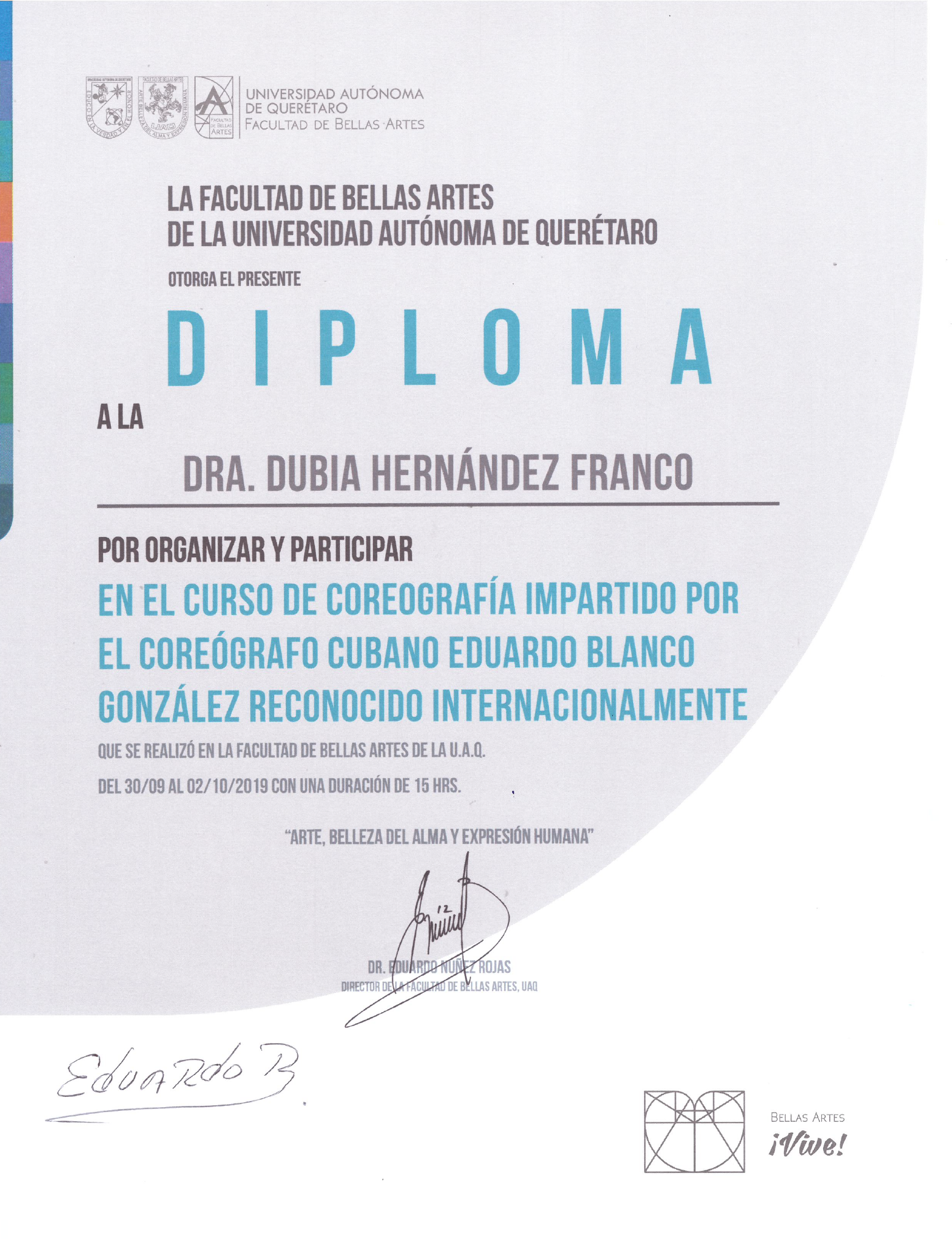 Dubia Hernandez, “Diploma Curso de Coreografia,” ReDCA-Ballet, consulta 9 de marzo de 2026, http://redca.uaq.mx/ballet/items/show/989.