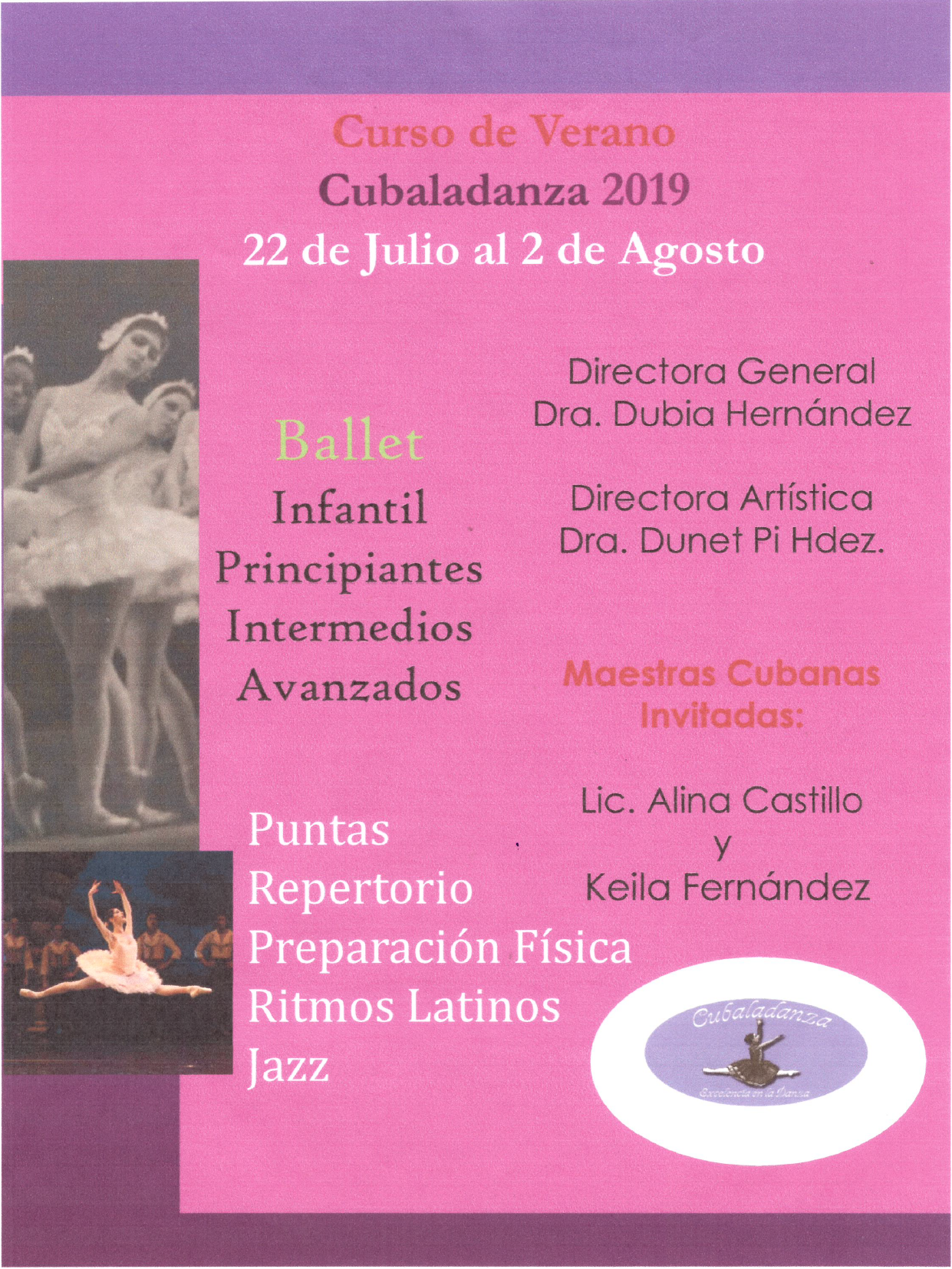 Cartel del Curso de Verano Cubaladanza 2019 realizado del 22 de julio al 2 de agosto del 2019