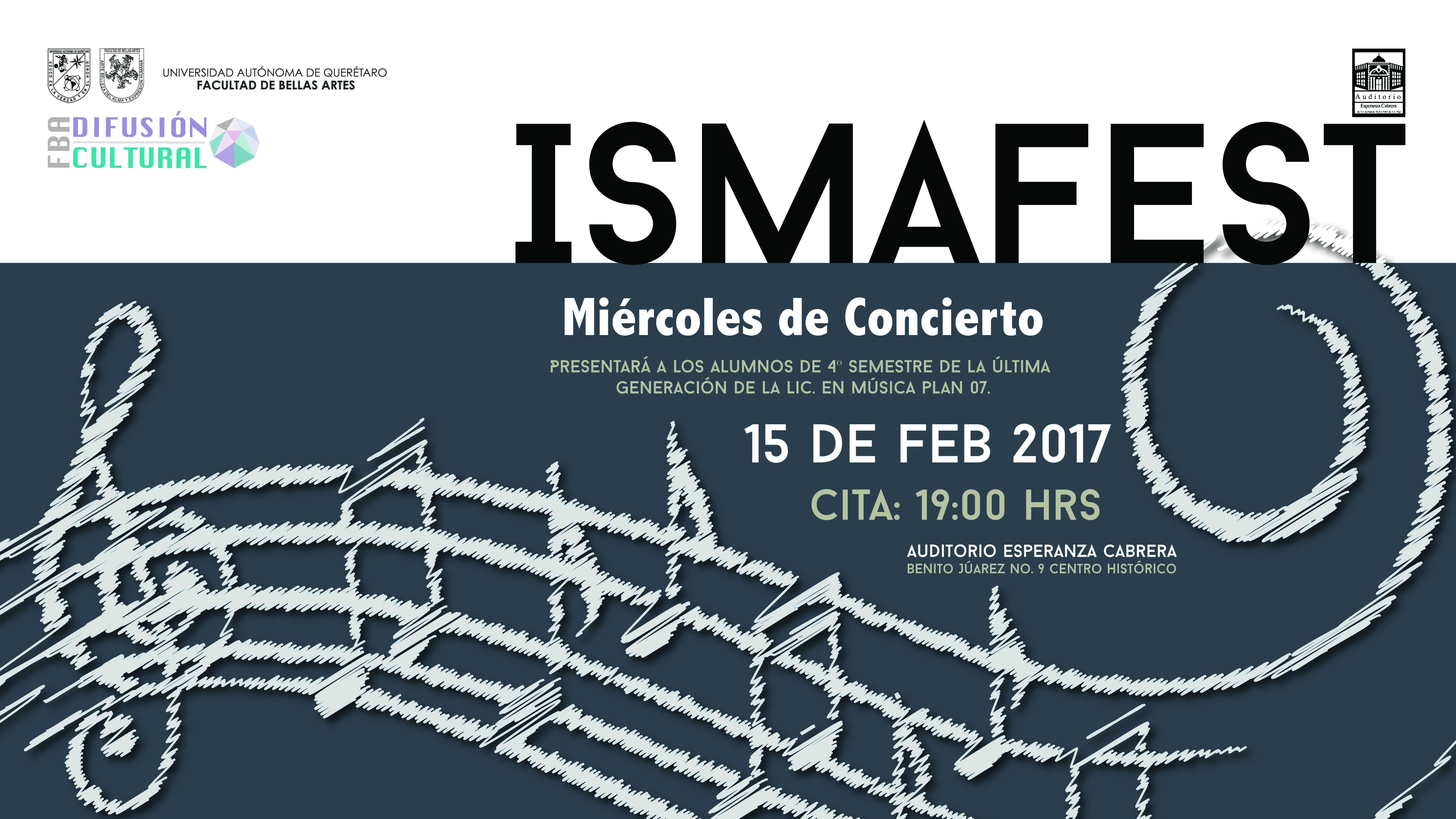 ISMAFEST, “ISMAFEST-Miércoles de concierto,” ReDCA-Eventos, consulta 9 de marzo de 2026, http://redca.uaq.mx/eventos/items/show/119.
