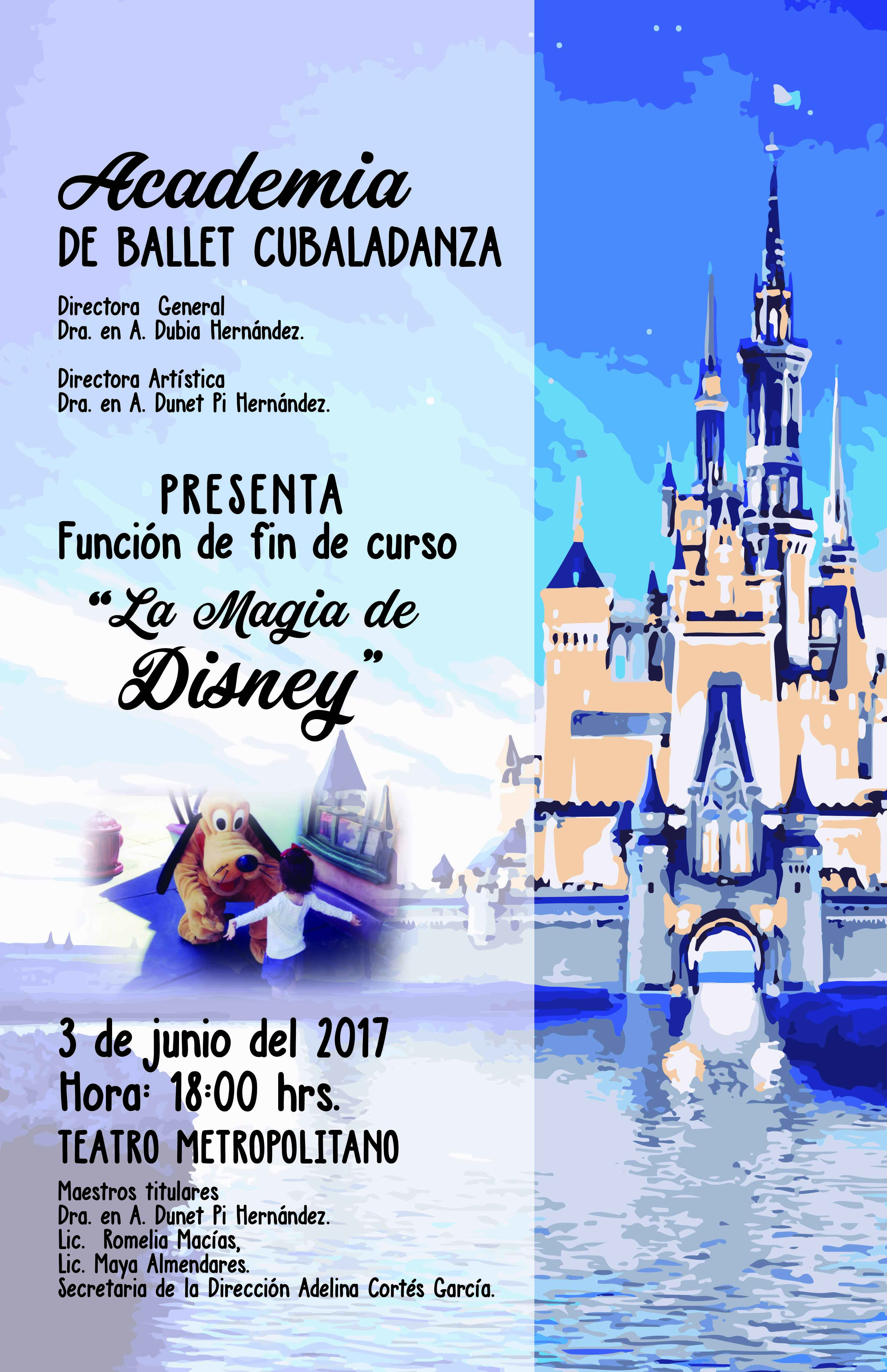 Academia de Ballet Cubaladanza-Maestros titulares: Dra. en A. Dunet Pi Hernández, Lic. Romelia Macías, Lic. Maya Almendares, Secretaria de la dirección Adelina Cortés García, “La magia de Disney,” ReDCA-Eventos, consulta 10 de marzo de 2026, http://redca.uaq.mx/eventos/items/show/120.