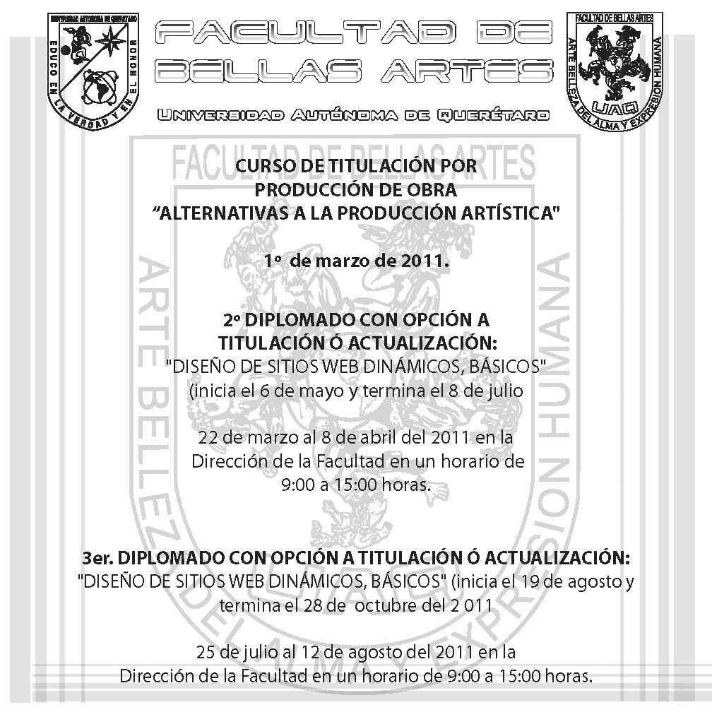 FBA UAQ, “Curso de Titulación por Producción de Obra,” ReDCA-Eventos, consulta 10 de marzo de 2026, http://redca.uaq.mx/eventos/items/show/131.