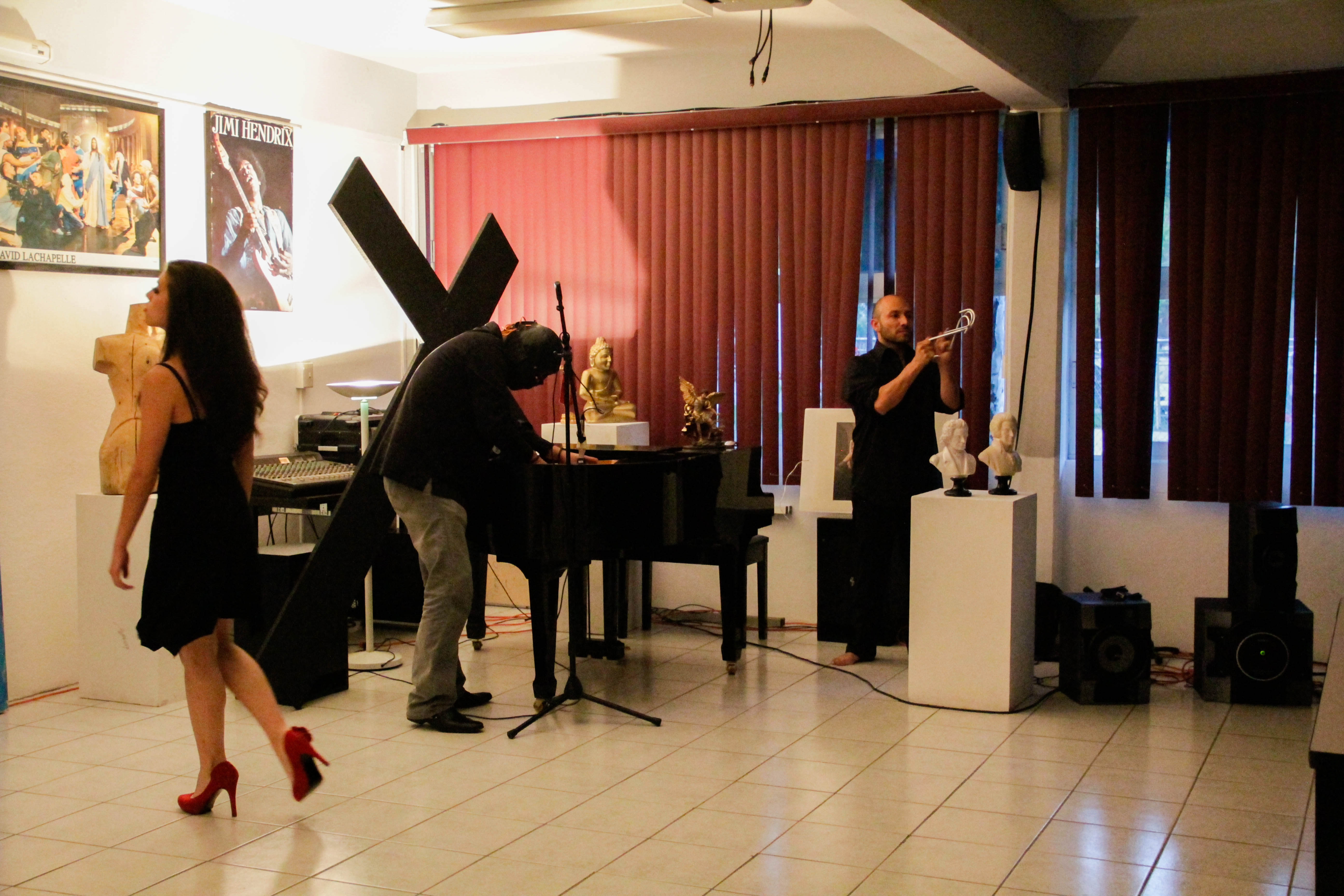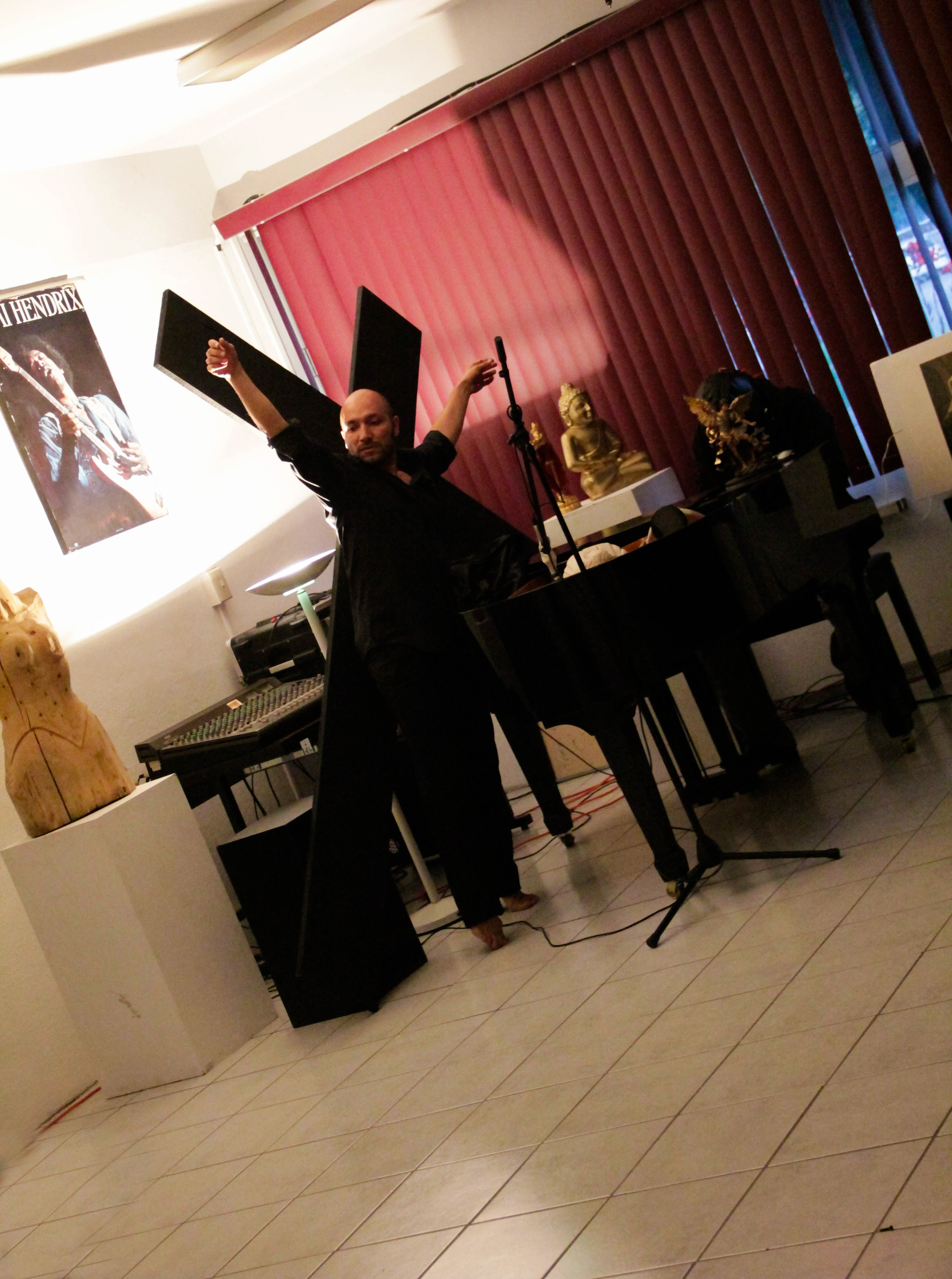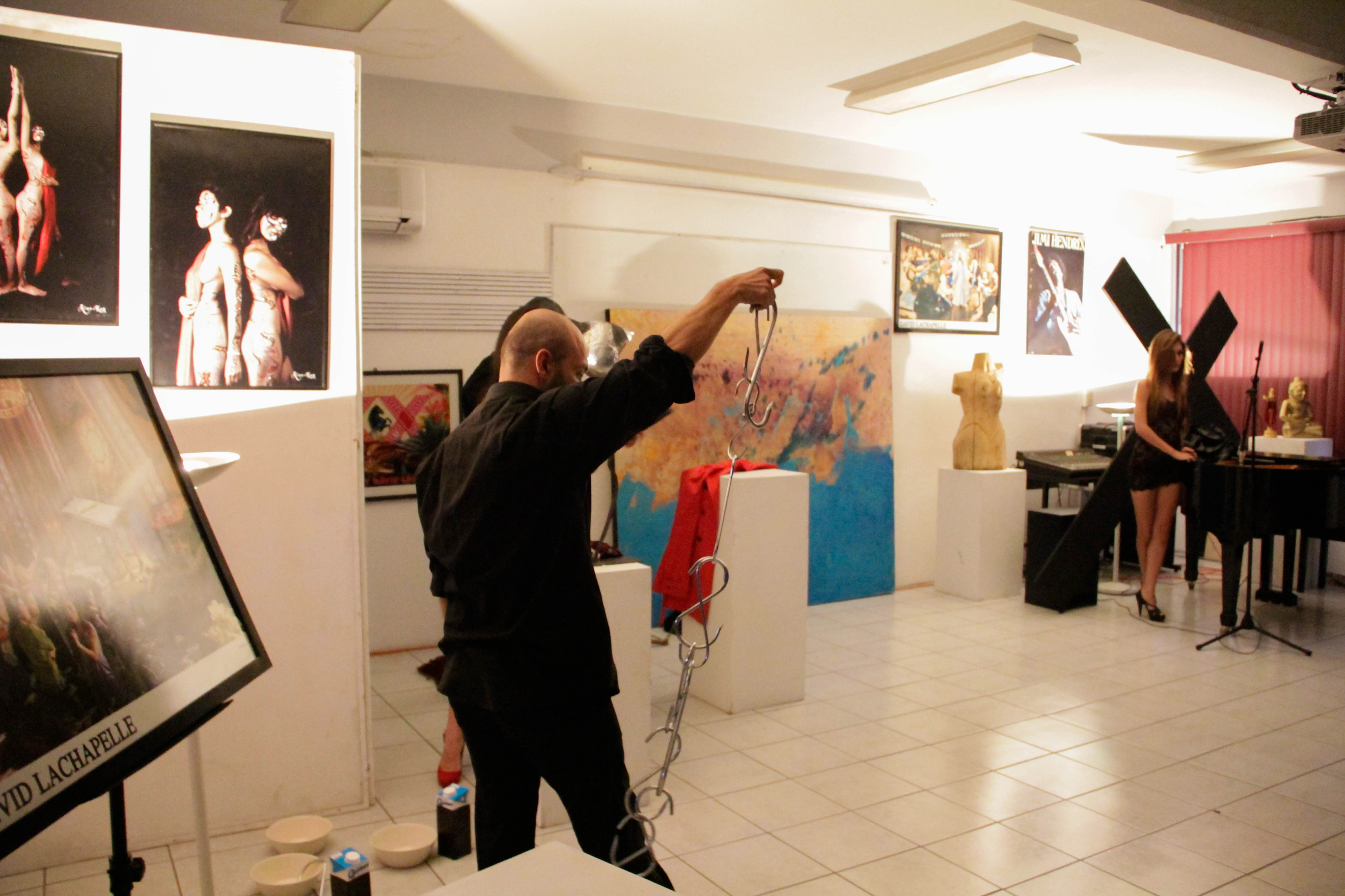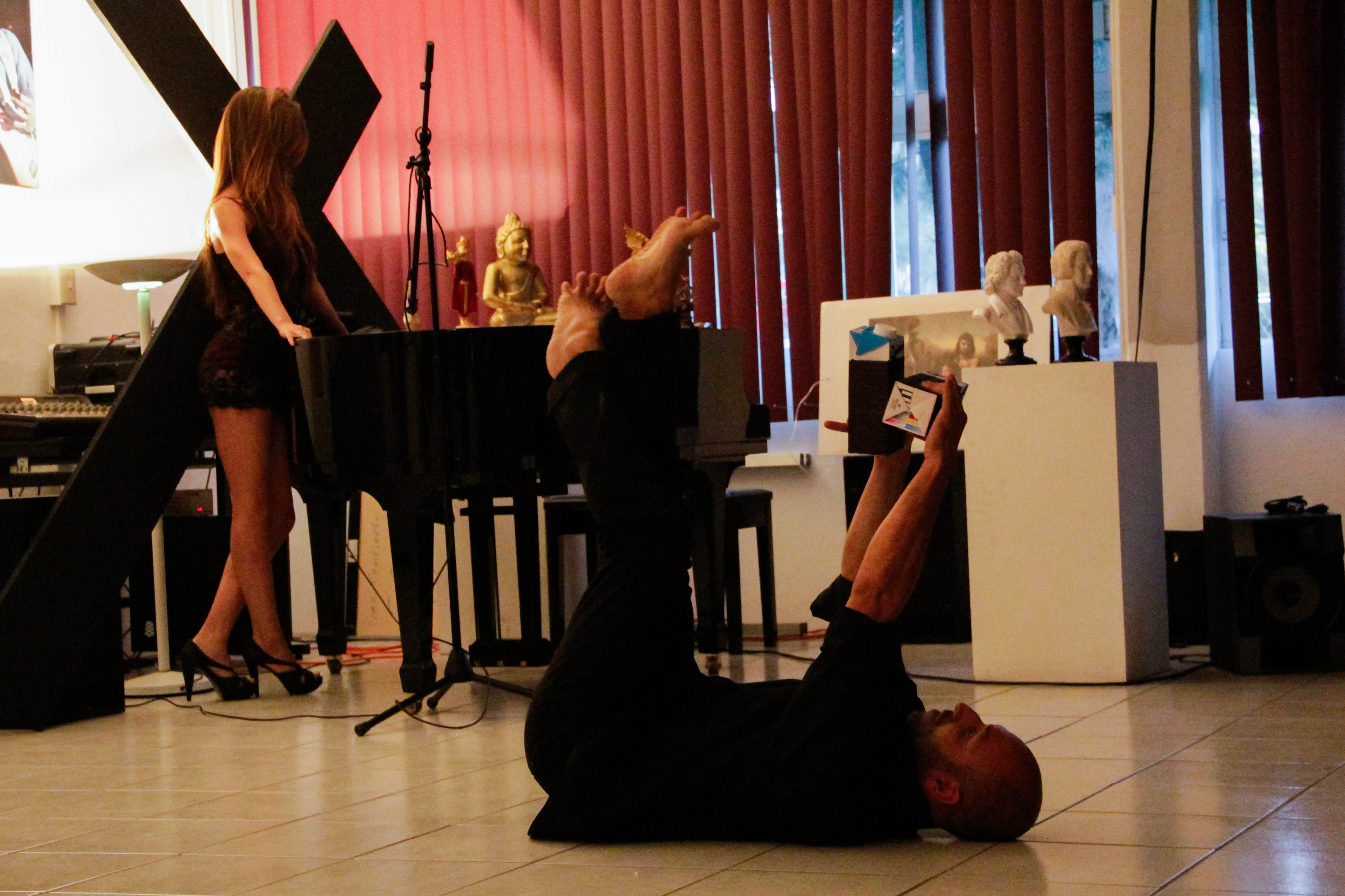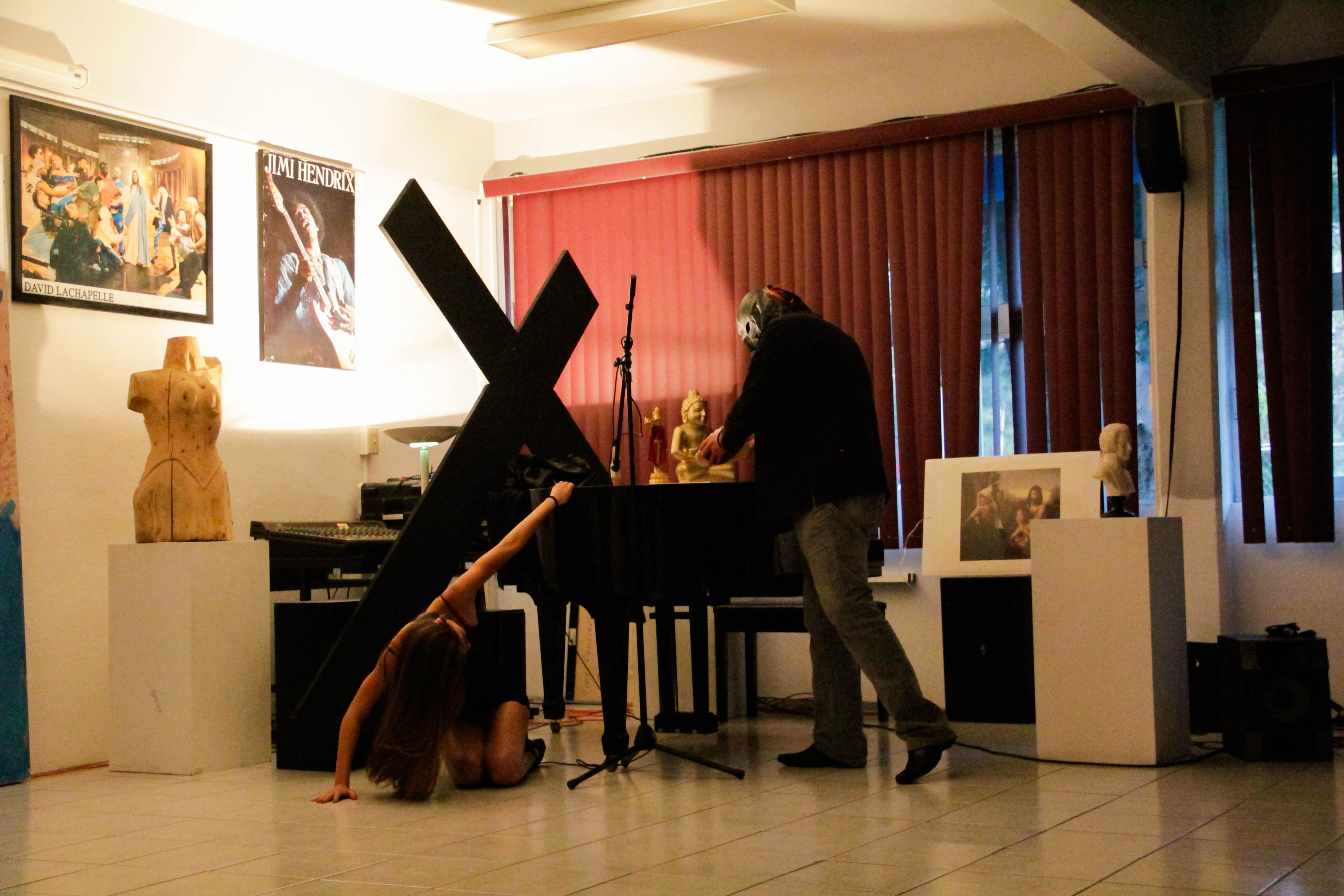 Homenaje a Carles Santos por parte del Mtro. Vicente López Velarde y alumnos de artes escénicas, performando con distintas obras plásticas y música