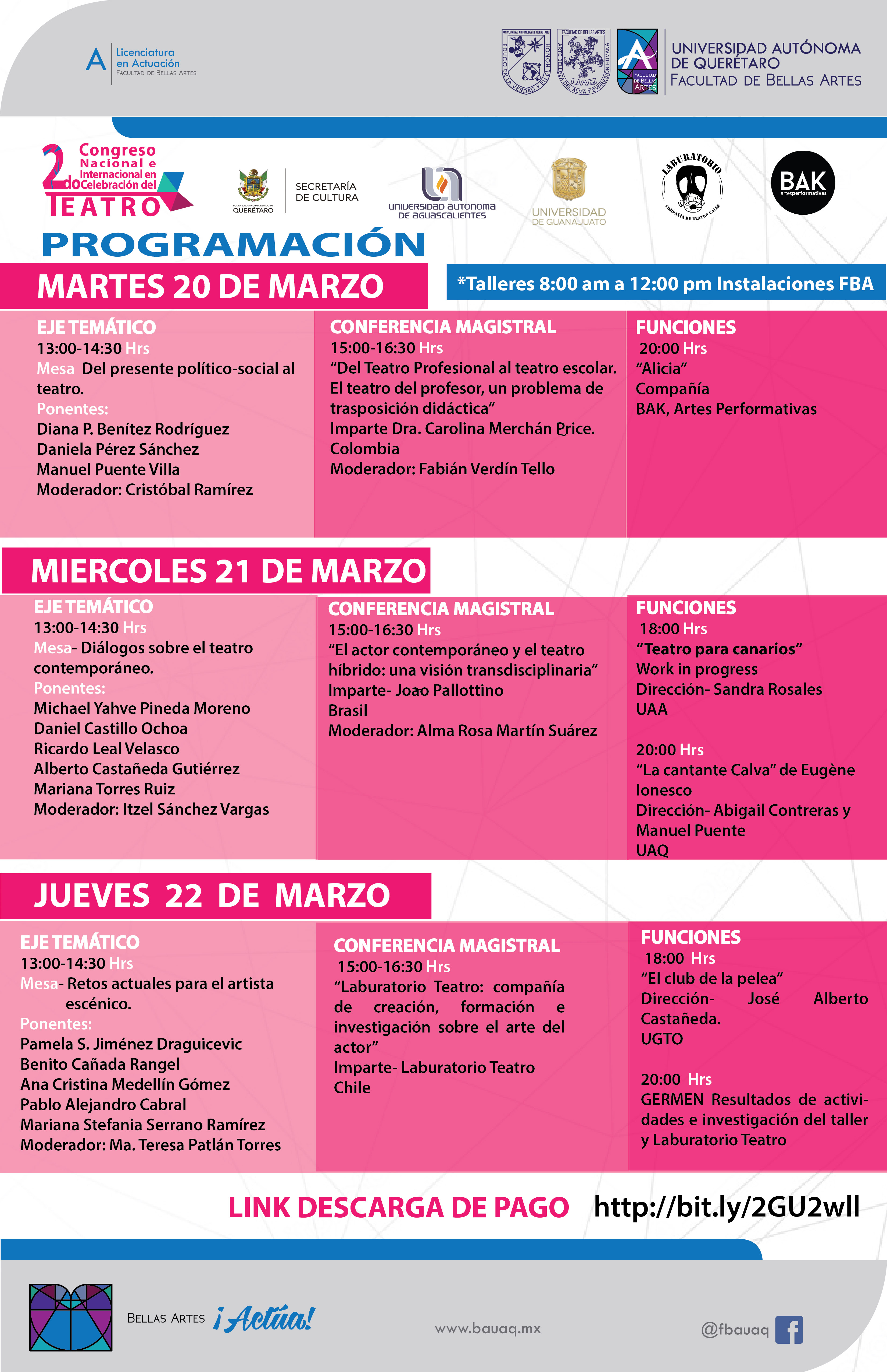 FBA UAQ, “2° Congreso Nacional e Internacional en celebaración del Teatro,” ReDCA-Eventos, consulta 9 de marzo de 2026, http://redca.uaq.mx/eventos/items/show/145.