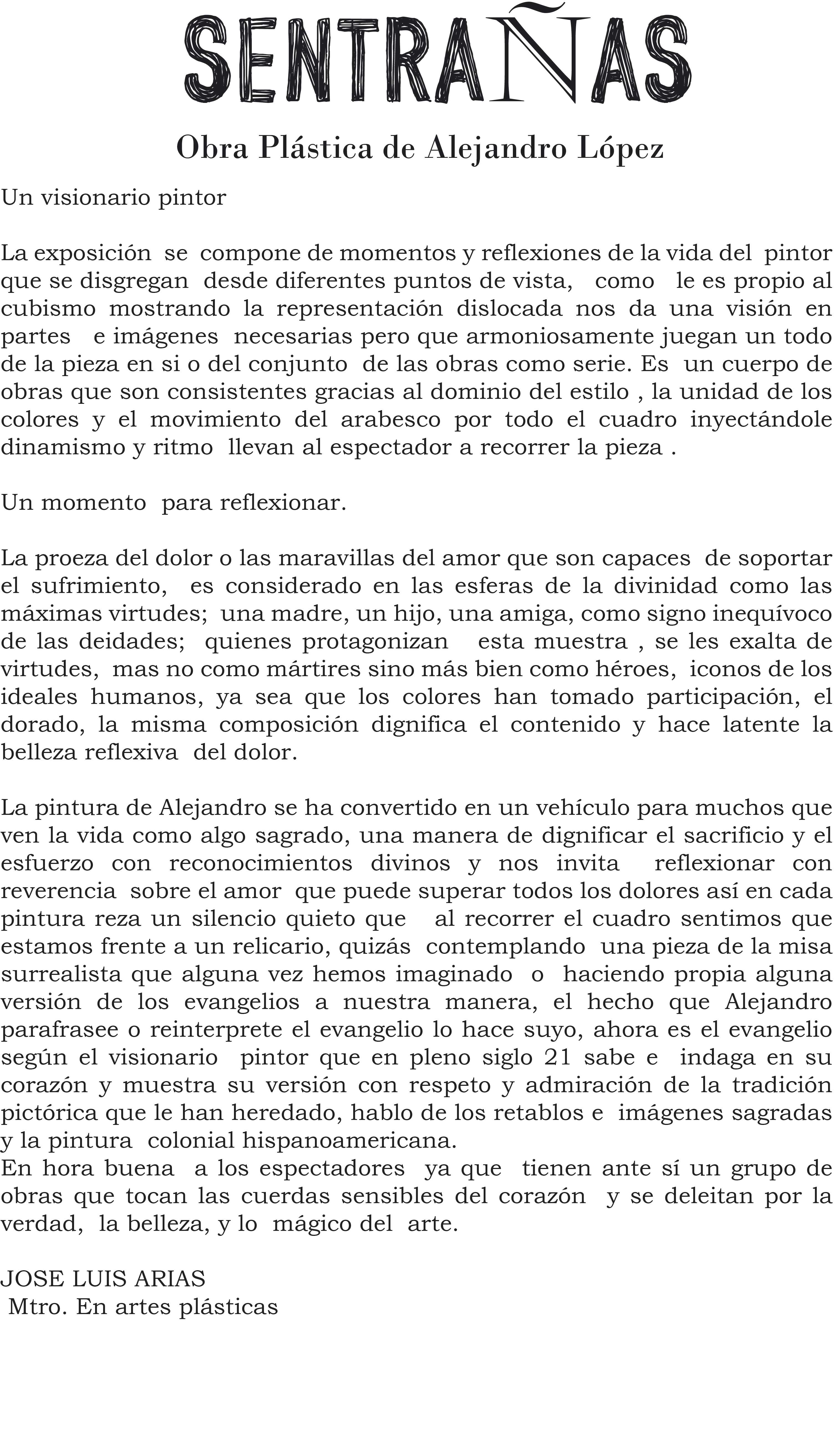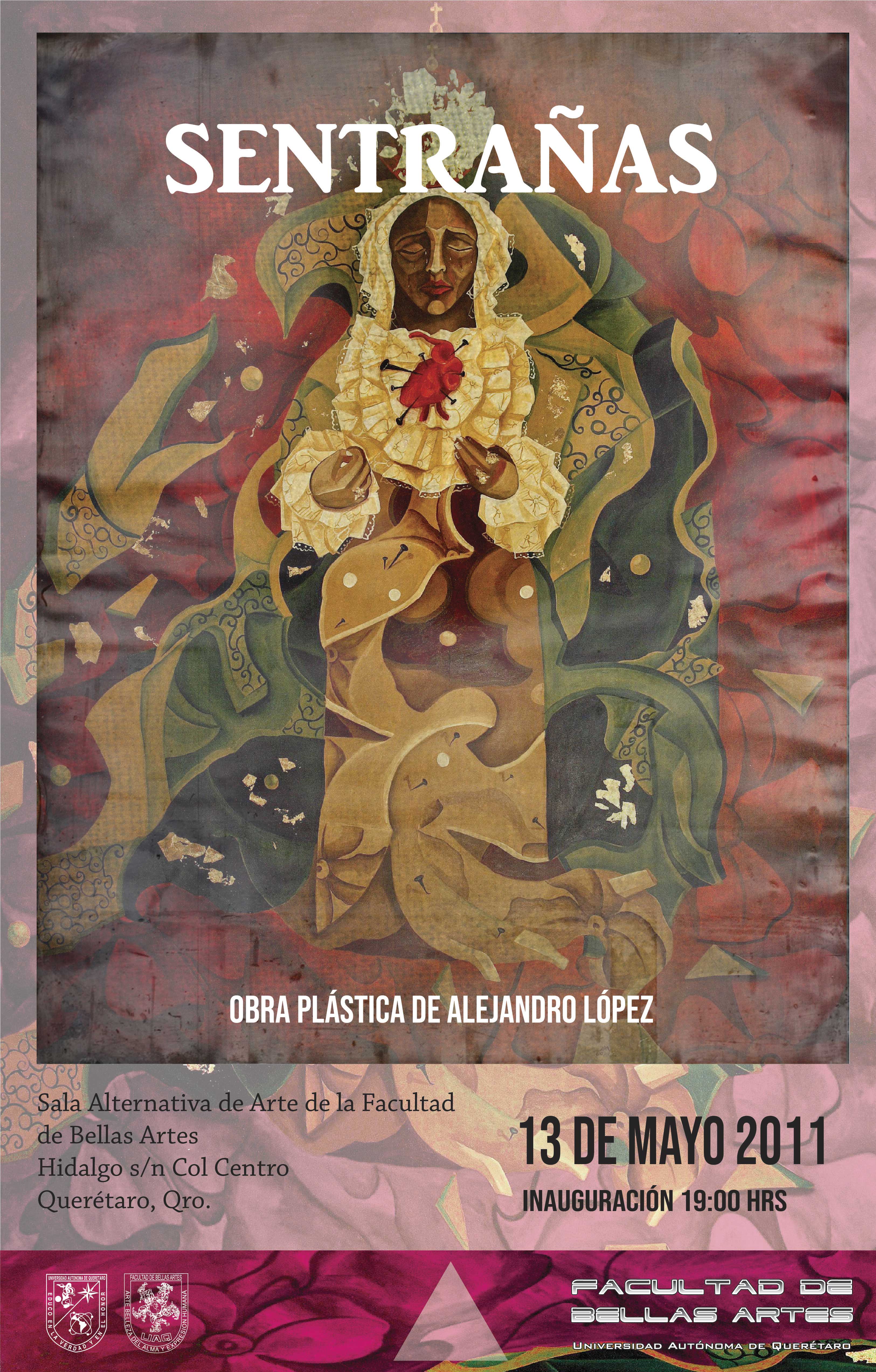 Inauguración de la exposición "Sentrañas" obra plástica Alejandro López en la Sala Alternativa de Arte de la Facultad de Artes el 13 de mayo de 2011 a las 19 hrs.
