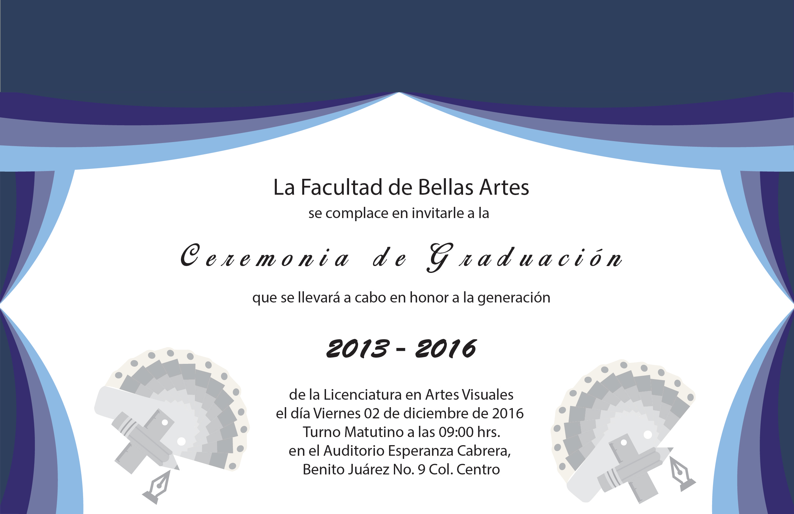 Ceremonia de graduación de la Licenciatura de Artes Visuales el día 2 de diciembre de 2016 del Turno Matutino a las 09 hrs. en el Auditorio Esperanza Cabrera