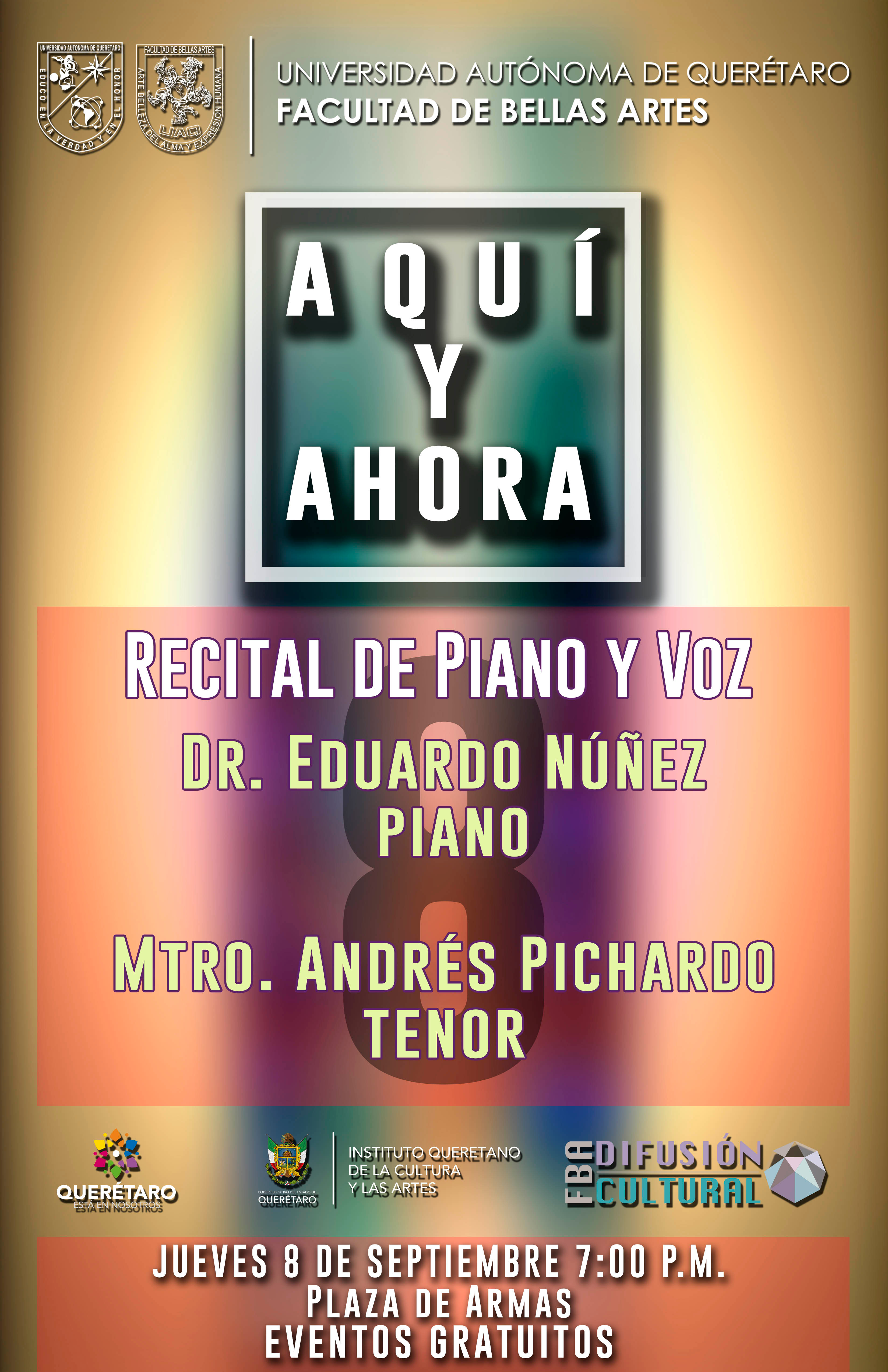 Dr. Eduardo Núñez Rojas y Mtro. Andrés Pichardo, “Aquí y Ahora. Recital de piano y voz,” ReDCA-Eventos, consulta 10 de marzo de 2026, http://redca.uaq.mx/eventos/items/show/218.