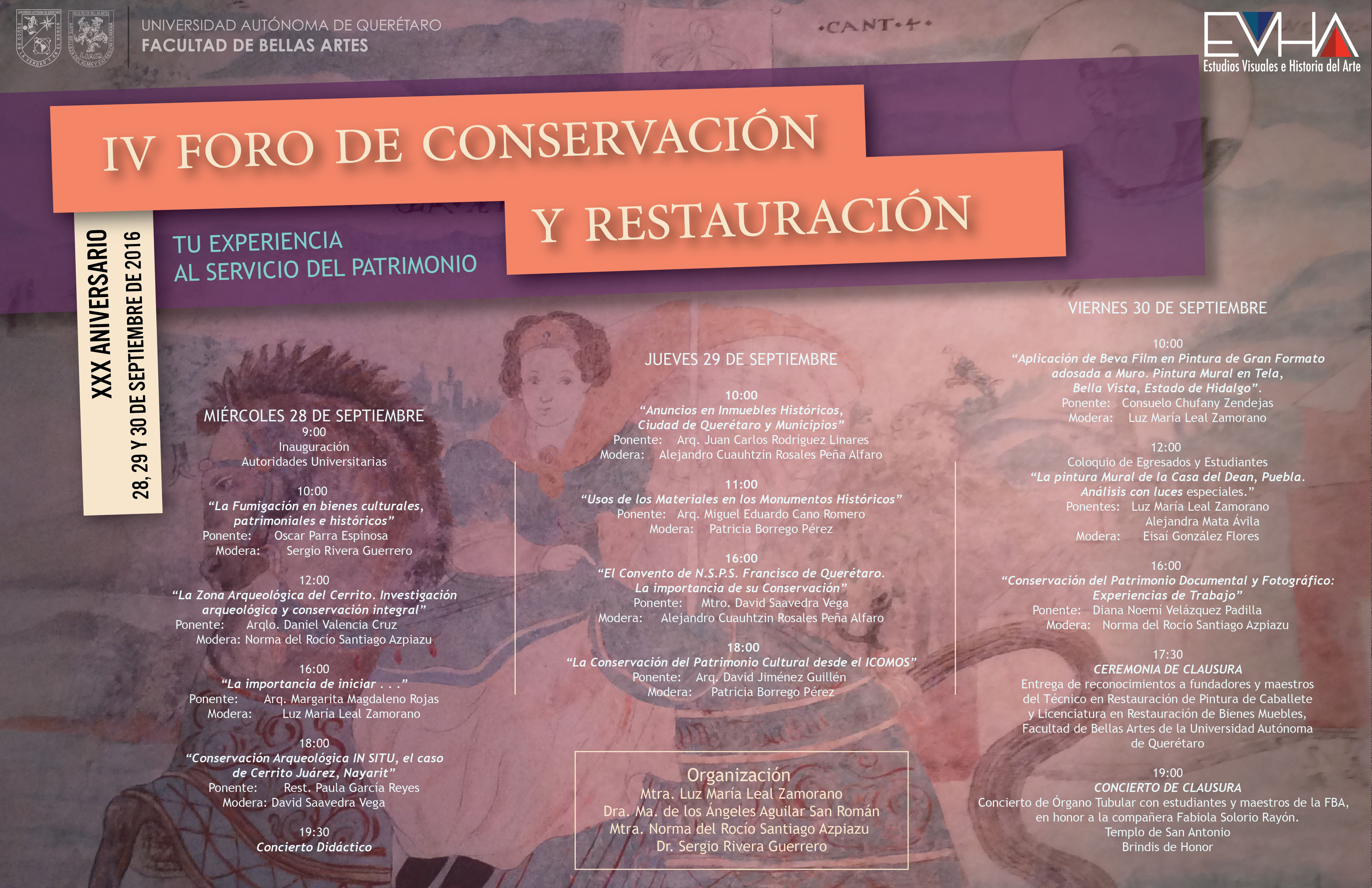FBA UAQ, “IV Foro de Conservación y Restauración,” ReDCA-Eventos, consulta 9 de marzo de 2026, http://redca.uaq.mx/eventos/items/show/227.