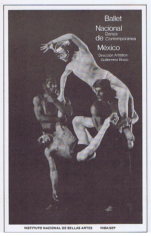 Cartel promocionando un evento de Danza Contemporánea presentado por el Ballet Nacional de México. Ballet Nacional de México dirigido por Guillermina Bravo