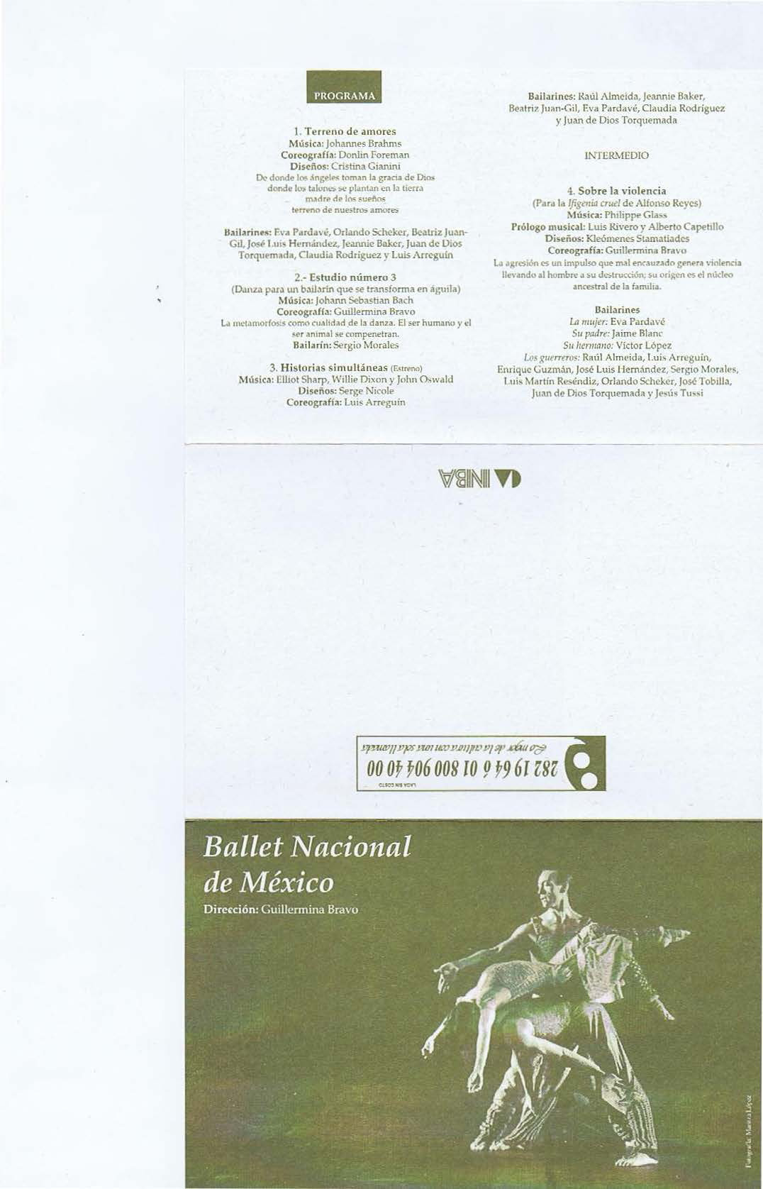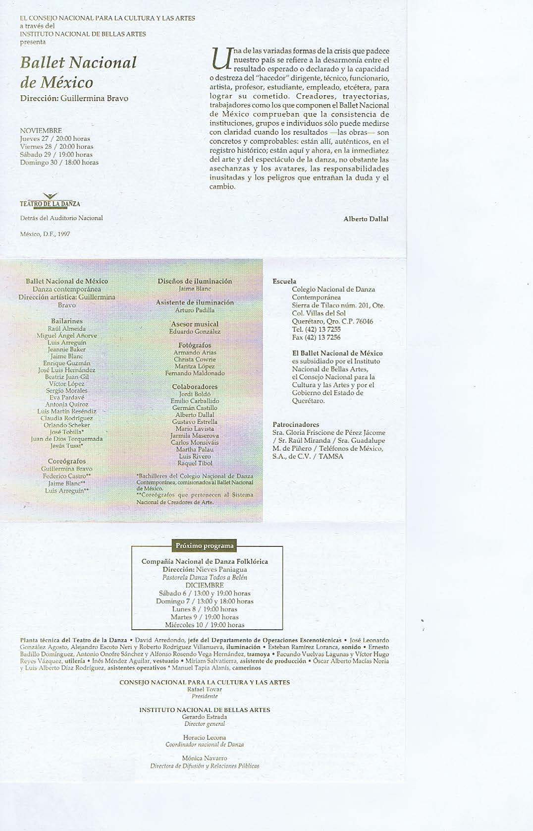 Programa de presentación de Ballet Nacional de México llevado a cabo en el Teatro de la danza en 1997.