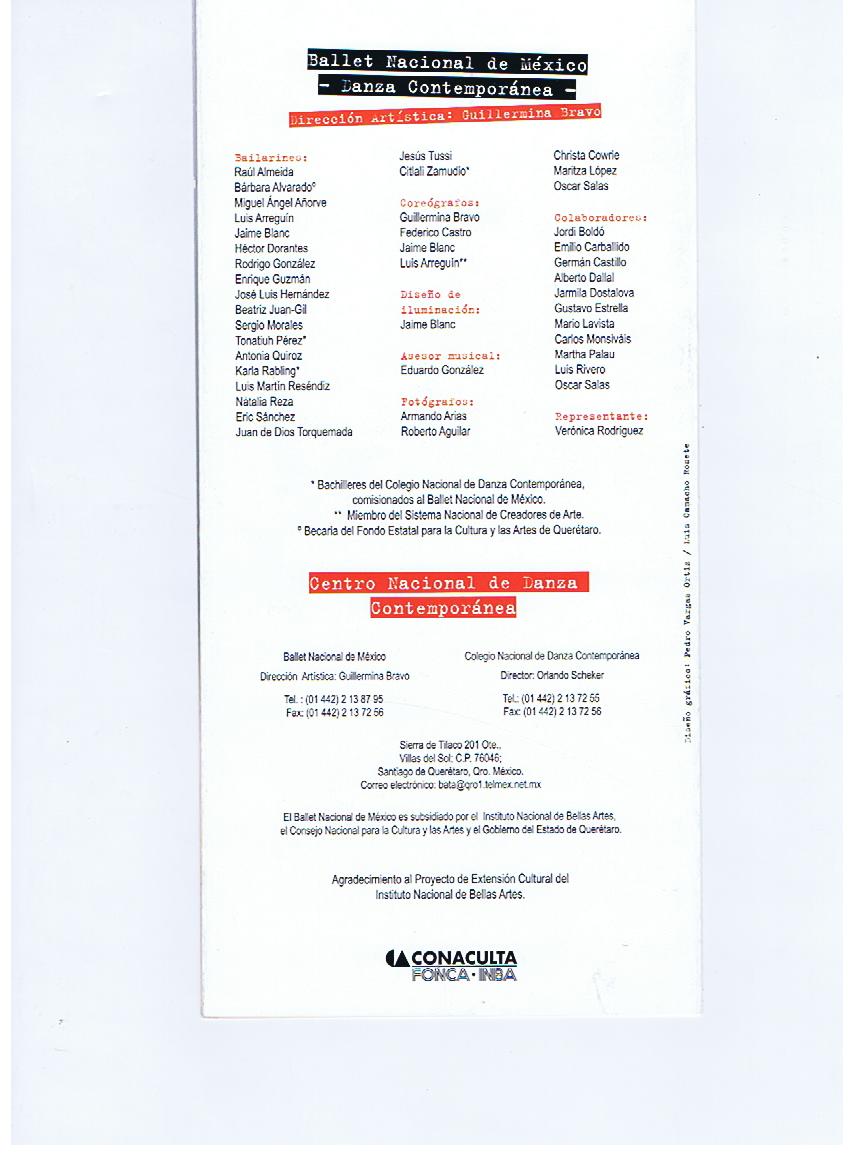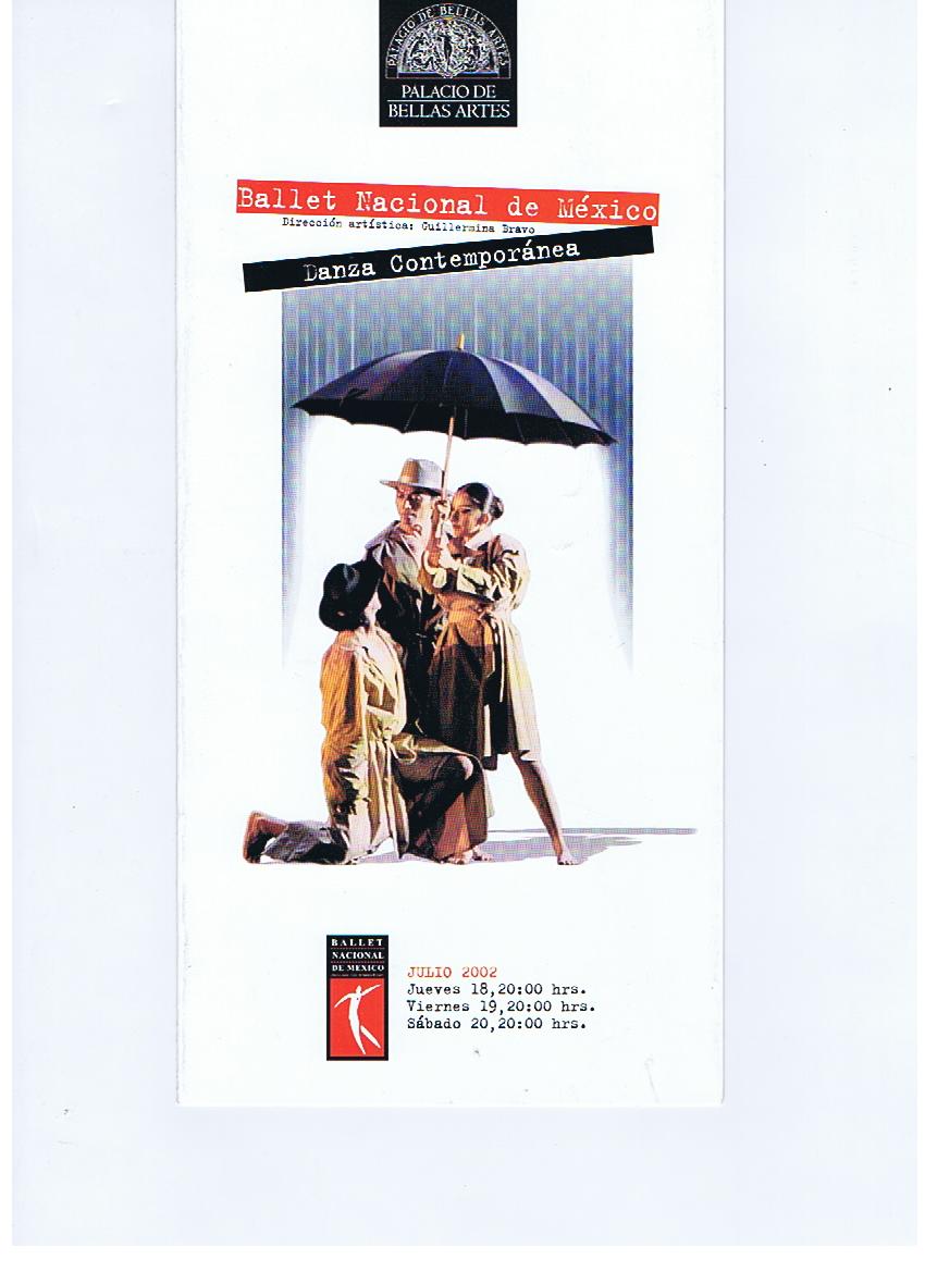 Folleto promocionando función de Danza Contemporánea del Ballet Nacional de México en el 2002.