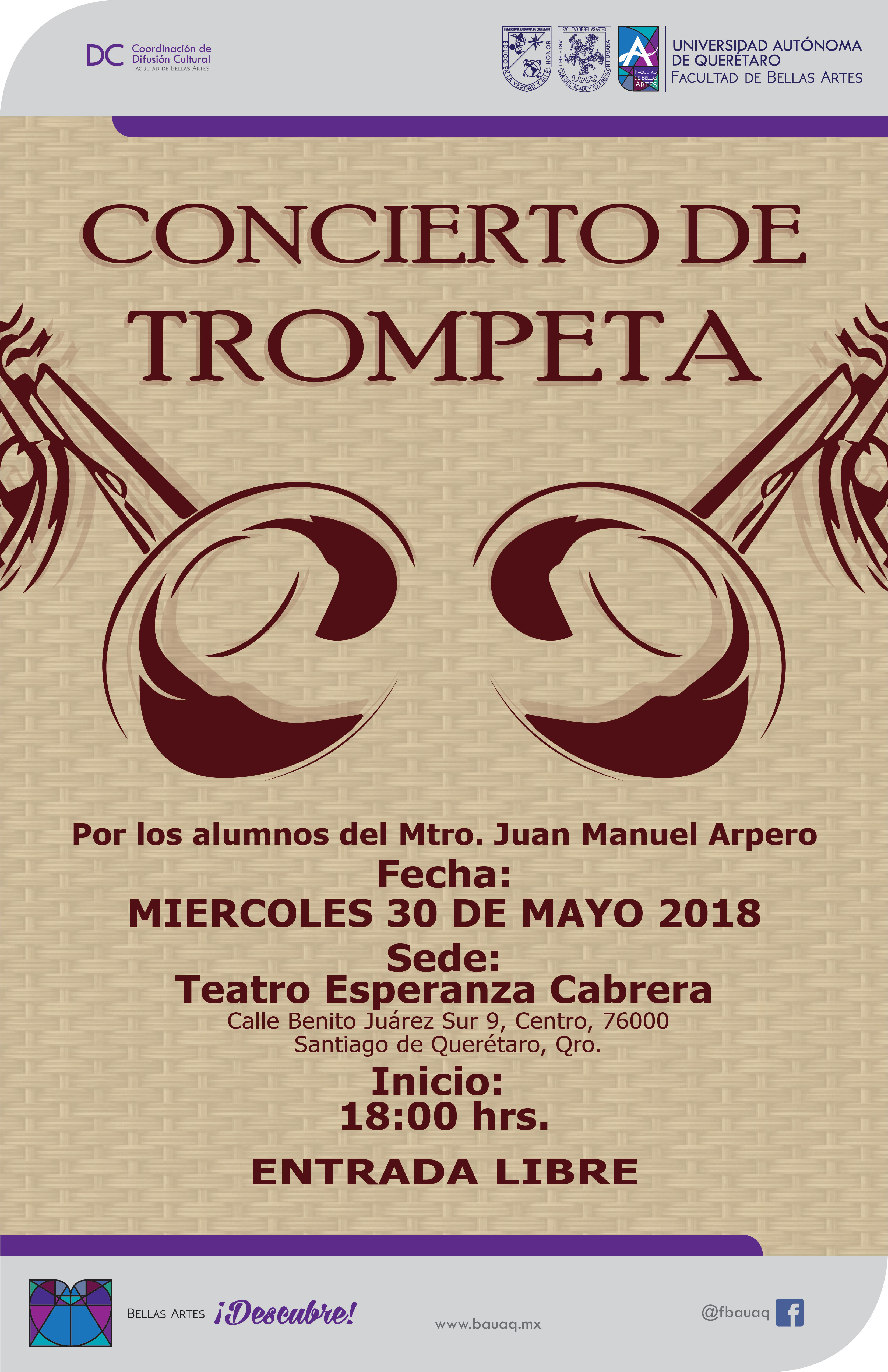 Alumnos del Mtro.Juan Manuel Arpero, “Concierto de Trompeta,” ReDCA-Eventos, consulta 9 de marzo de 2026, http://redca.uaq.mx/eventos/items/show/293.