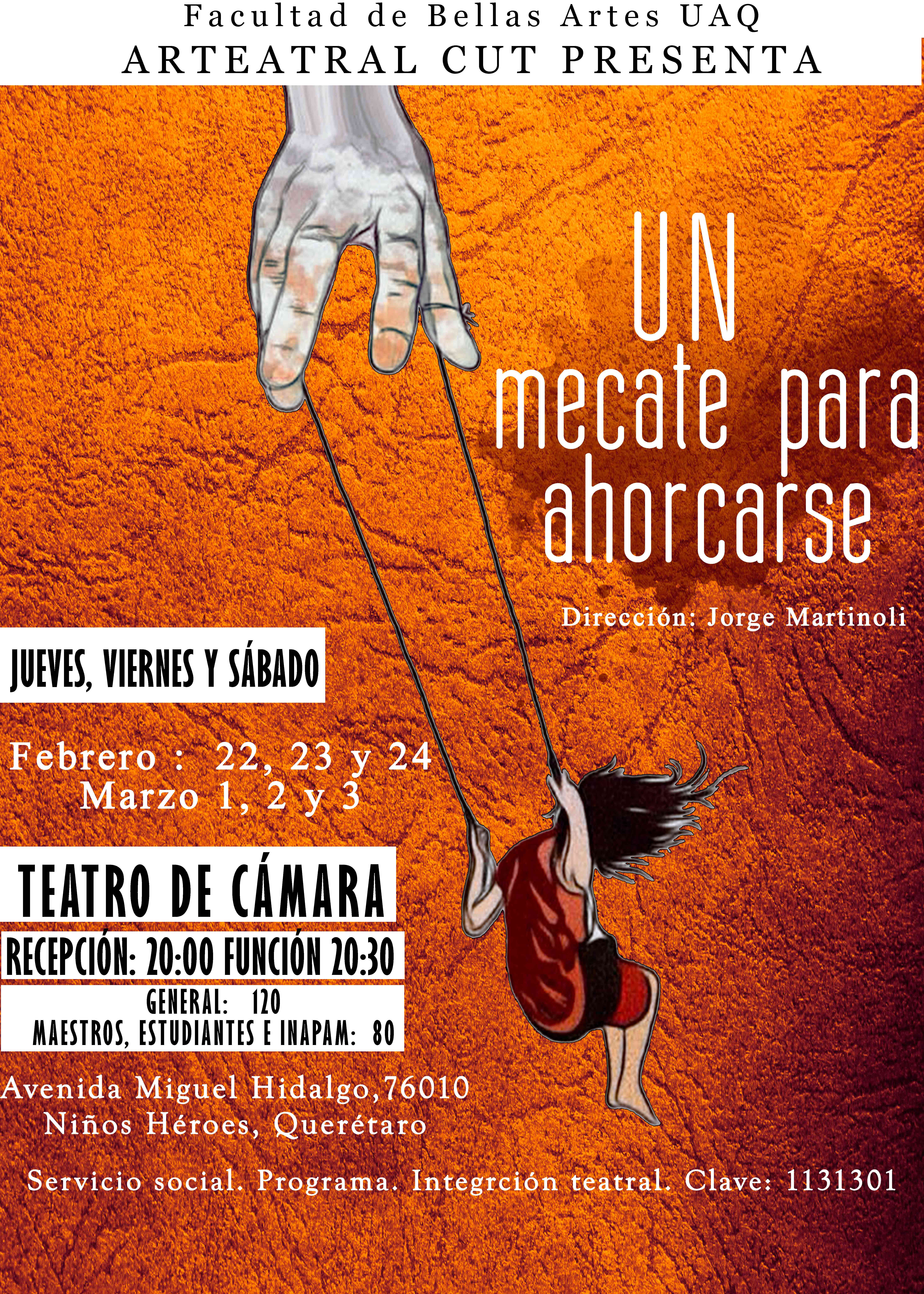 Arteatral CUT, “Un mecate para ahorcarse,” ReDCA-Eventos, consulta 9 de marzo de 2026, http://redca.uaq.mx/eventos/items/show/303.