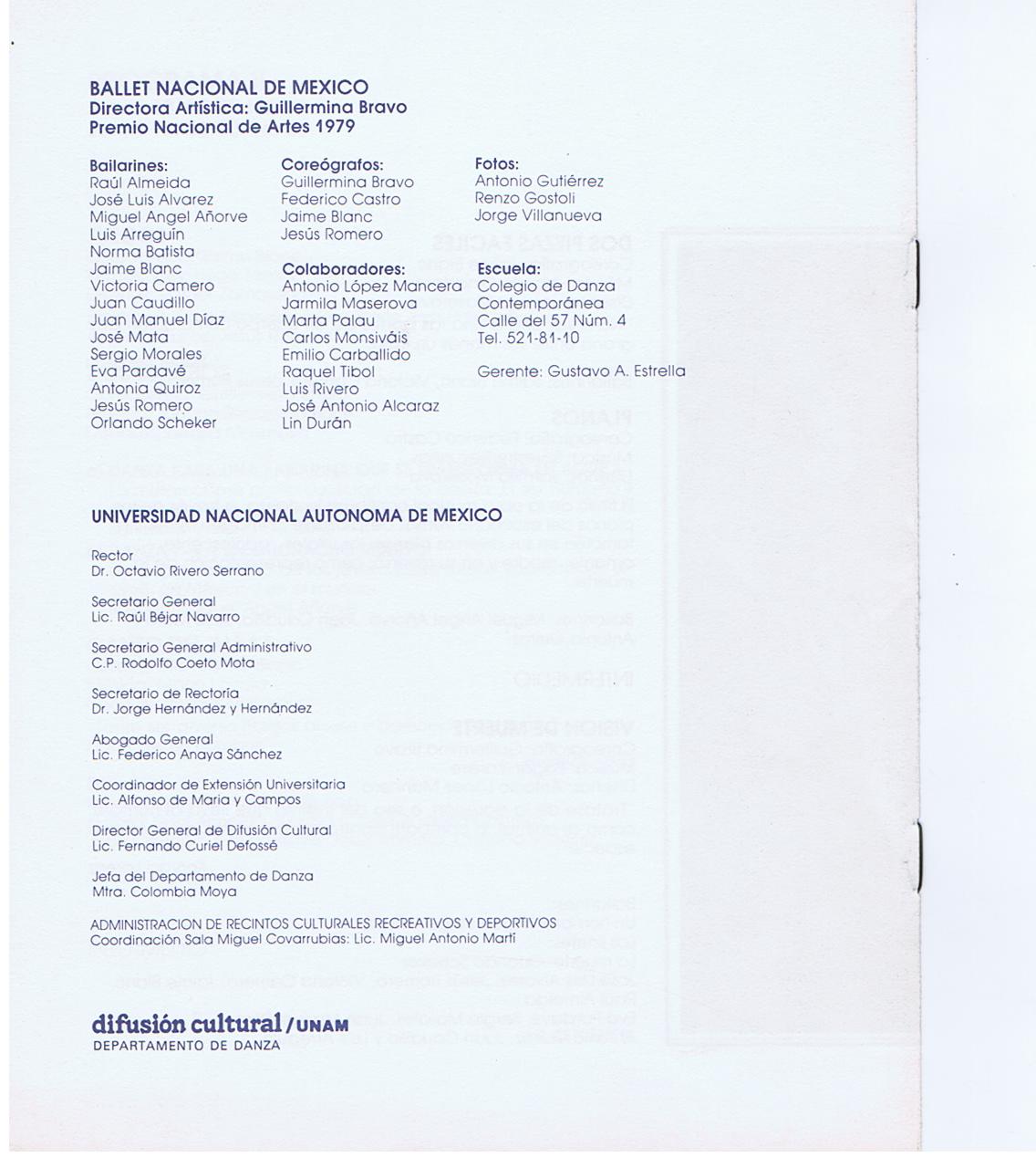 Folleto promocionando la premiación al Ballet Nacional de México en 1979.