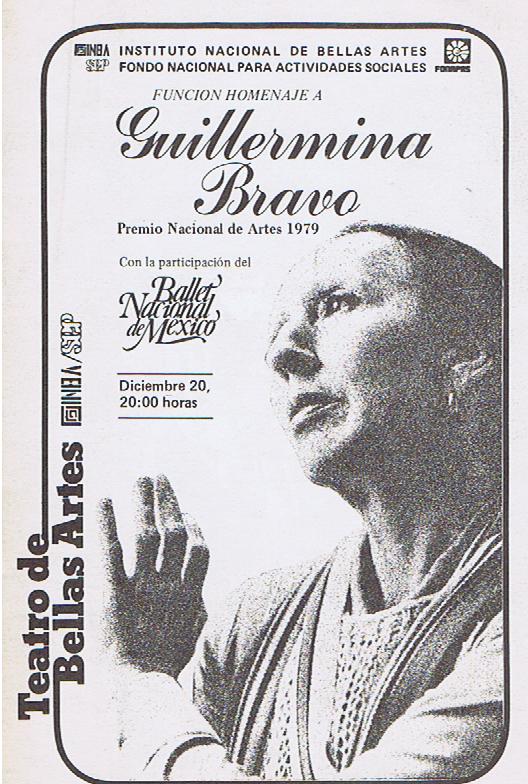 Ballet Nacional de México, “Homenaje a Guillermina Bravo 1979,” ReDCA-Eventos, consulta 10 de marzo de 2026, http://redca.uaq.mx/eventos/items/show/308.
