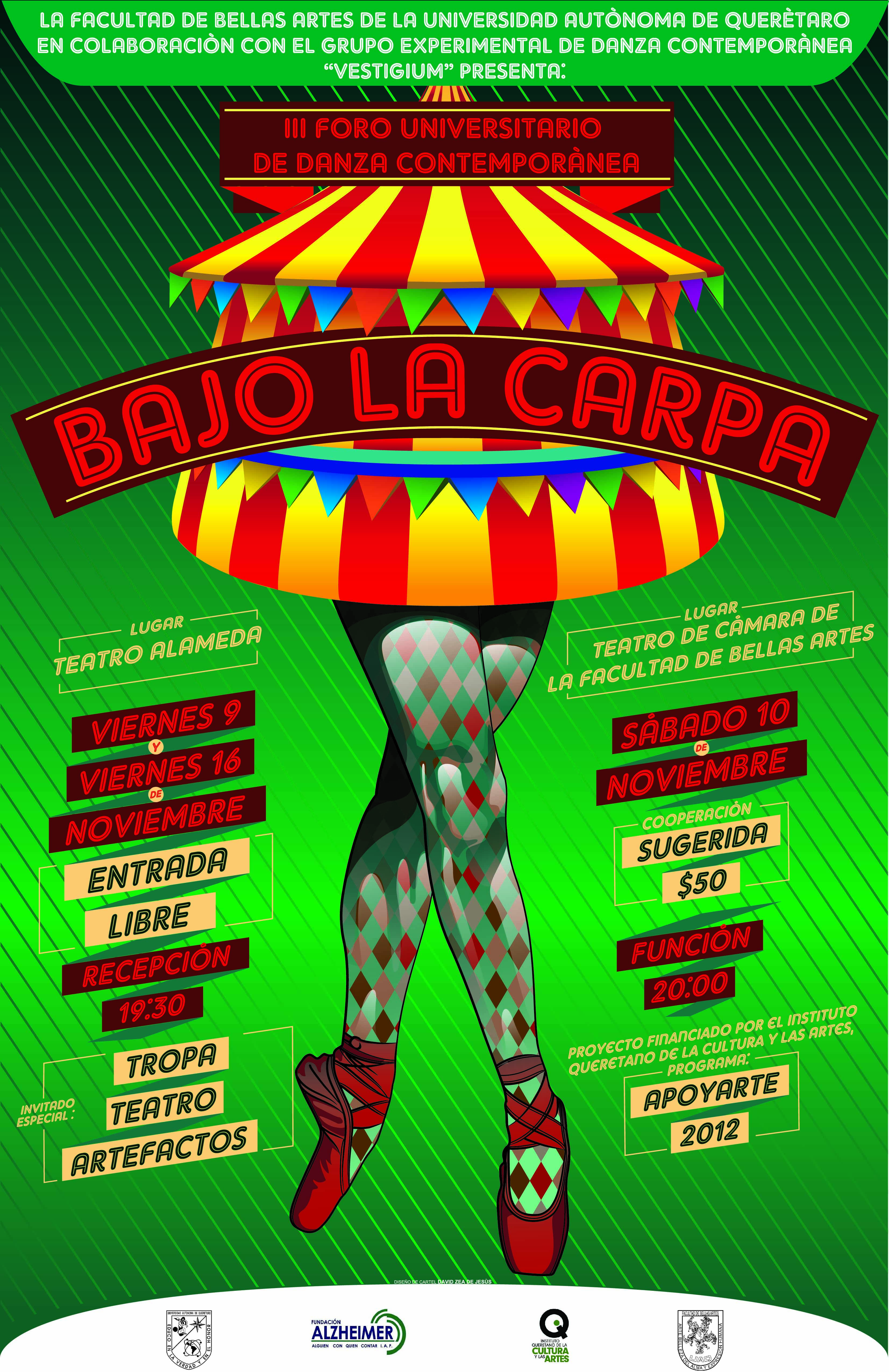 FBA y Vestigium, “Bajo la carpa,” ReDCA-Eventos, consulta 10 de marzo de 2026, http://redca.uaq.mx/eventos/items/show/31.