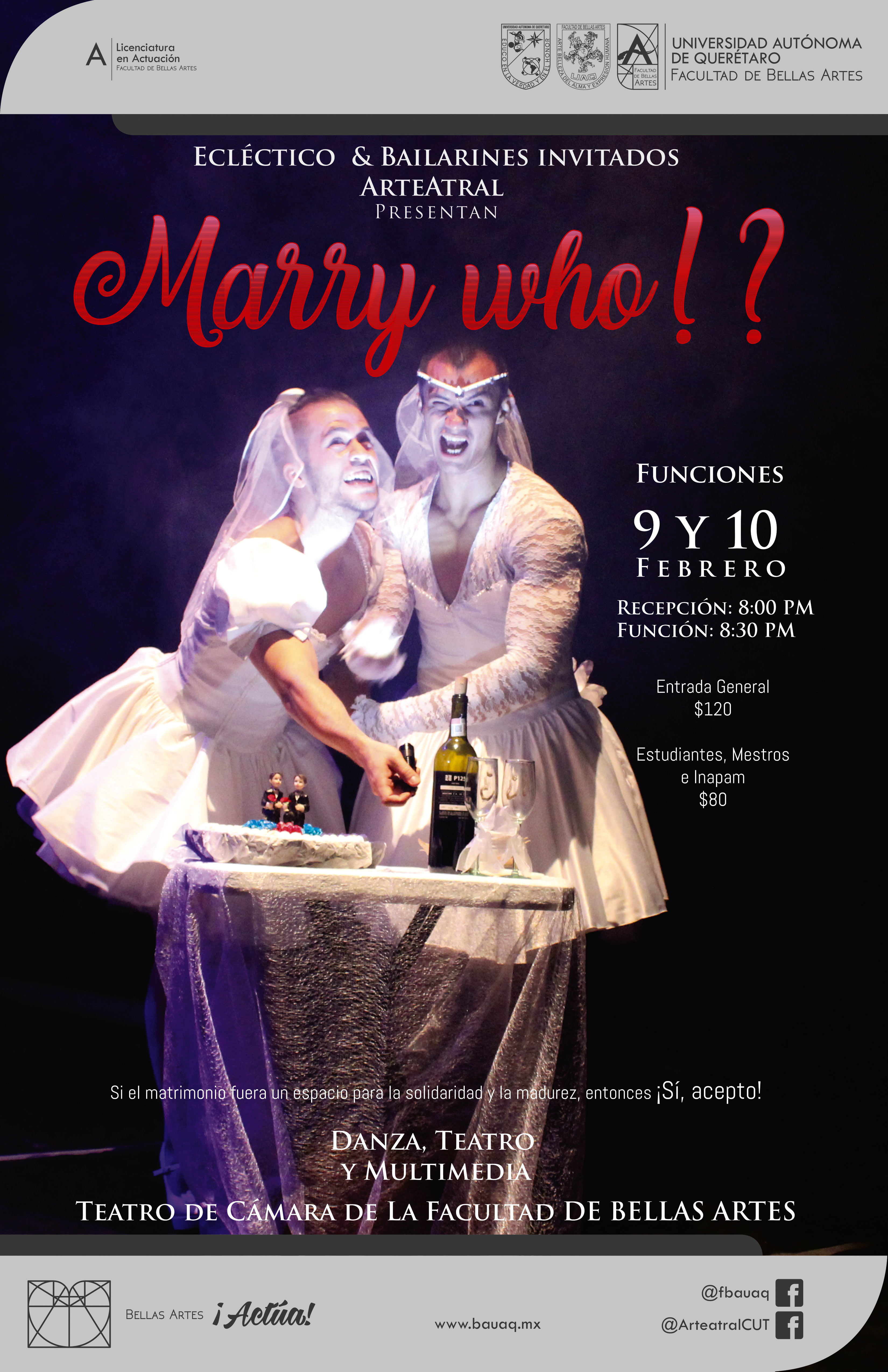 Ecléctico y Bailarines invitados Arteatral, “Marry who!?,” ReDCA-Eventos, consulta 9 de marzo de 2026, http://redca.uaq.mx/eventos/items/show/311.
